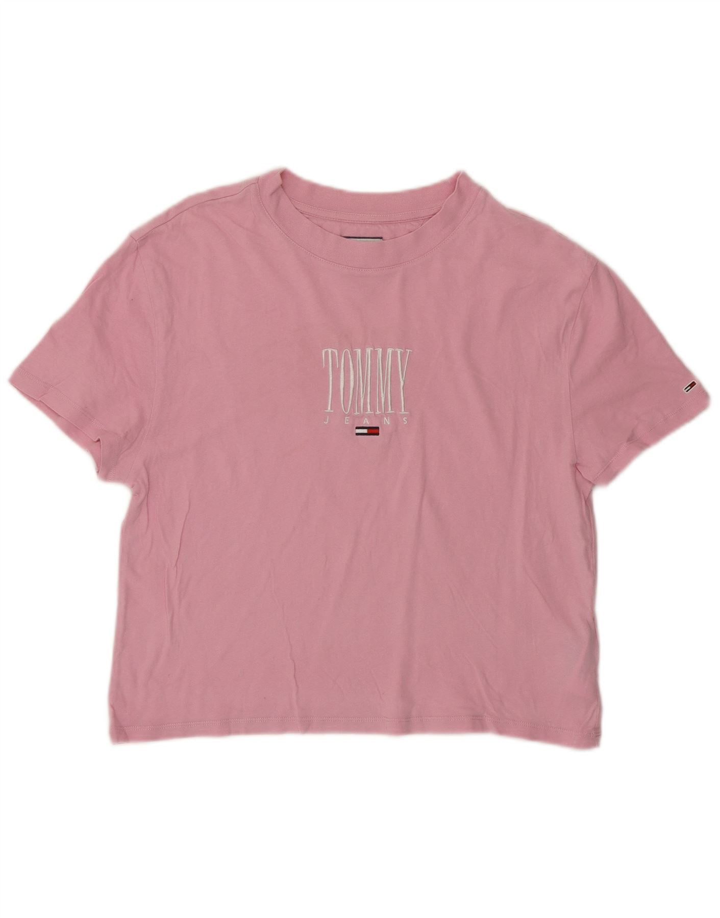 TOMMY HILFIGER Womens Oversized Crop Graphic T-Shirt Top UK 6 XS Pink