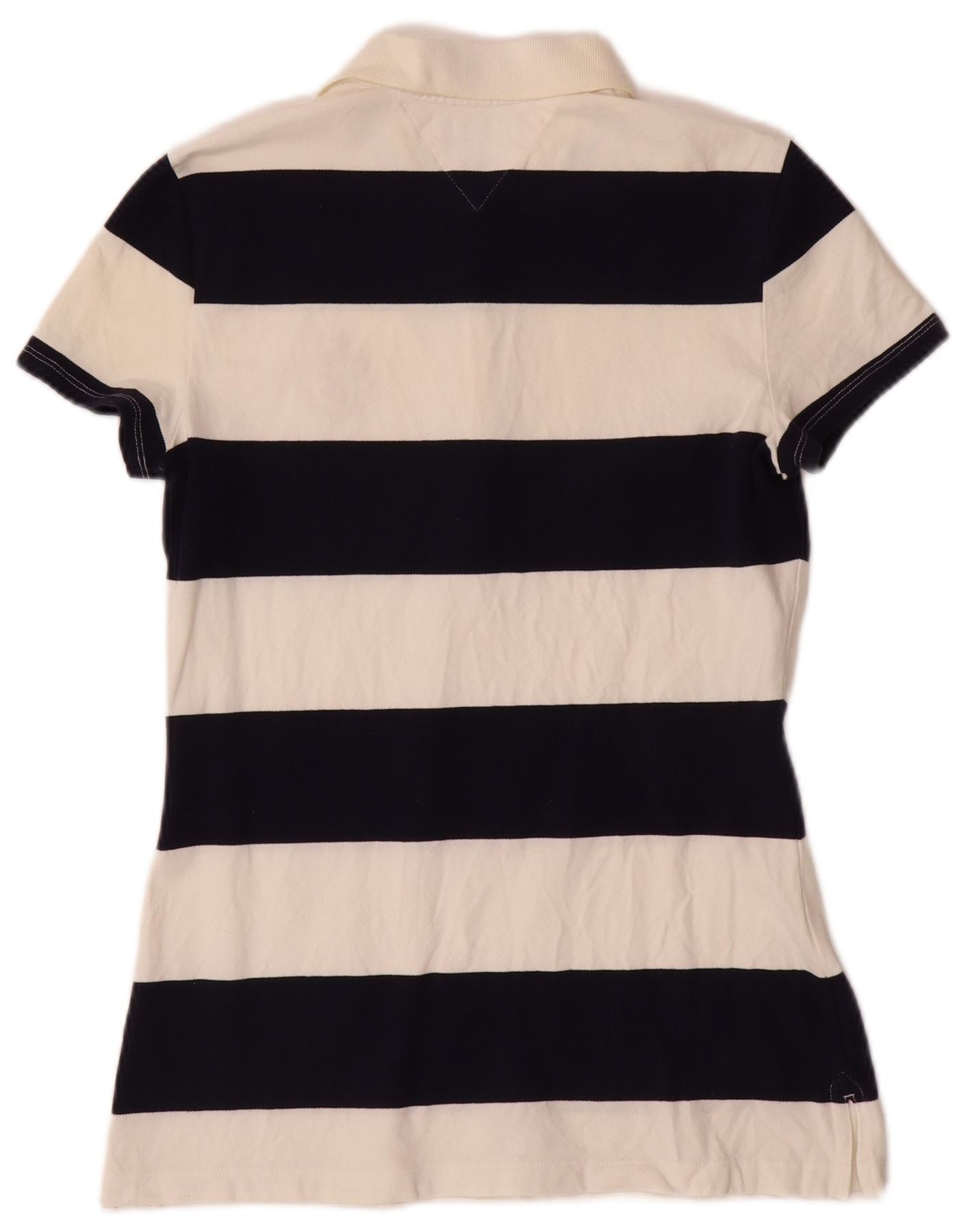TOMMY HILFIGER Tricou polo pentru femei UK 12 Bumbac cu dungi alb mediu mediu