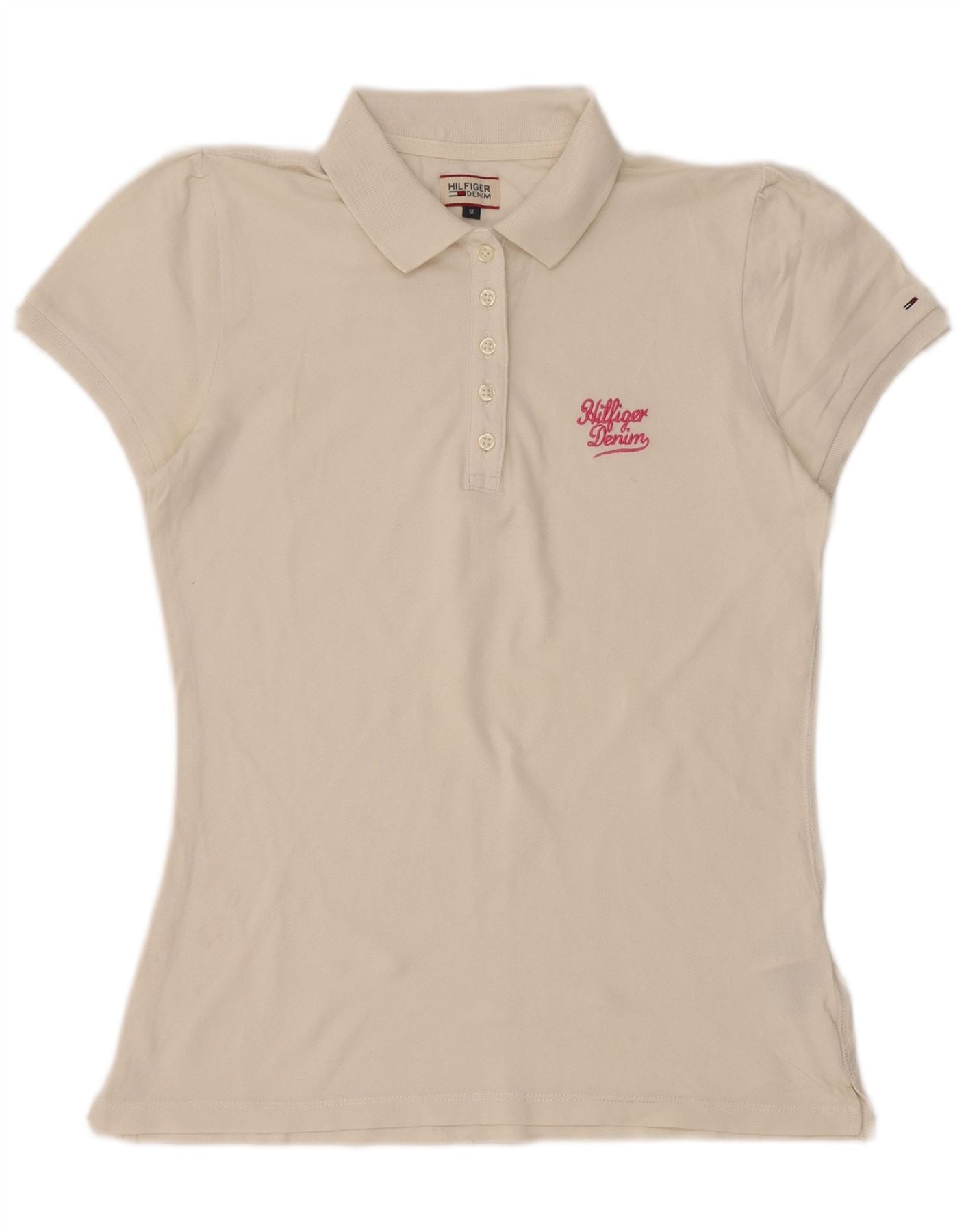 TOMMY HILFIGER Tricou polo pentru femei UK 12 Bumbac alb mediu