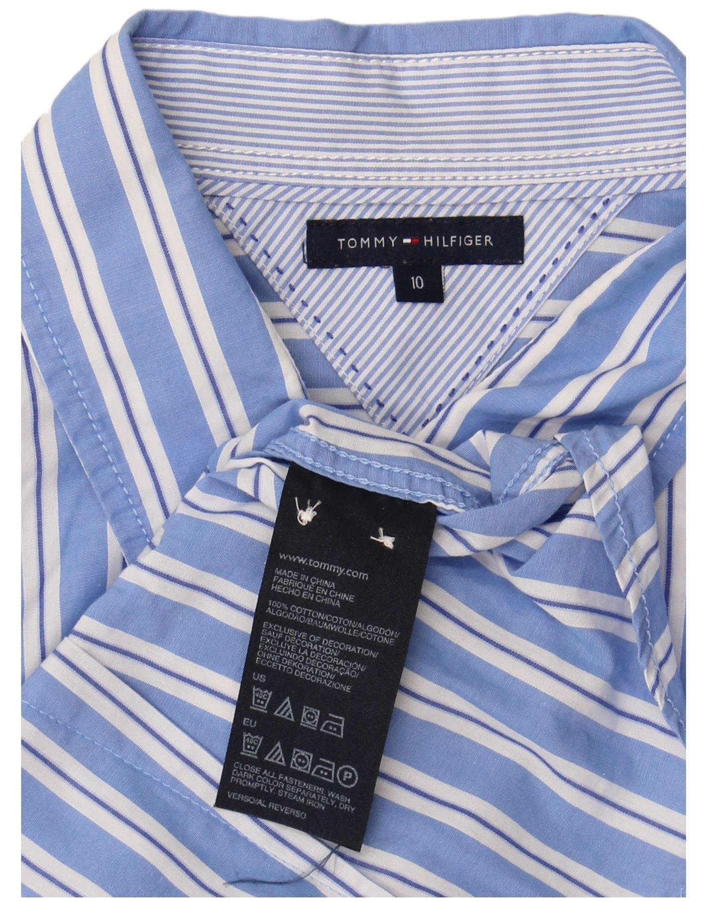 TOMMY HILFIGER Cămașă cu volane în față pentru femei US 10, bumbac cu dungi albastre mari