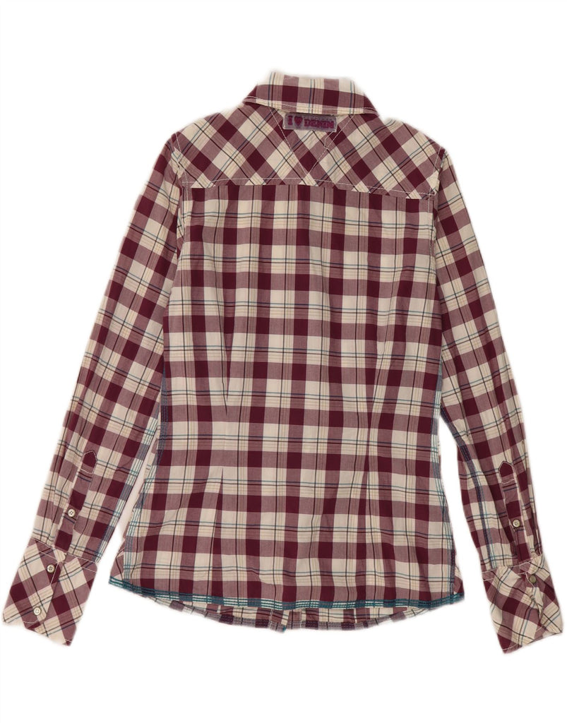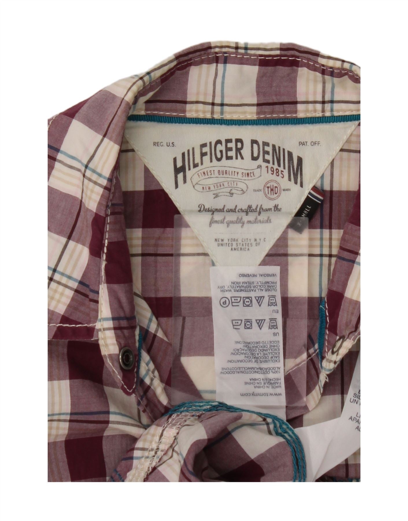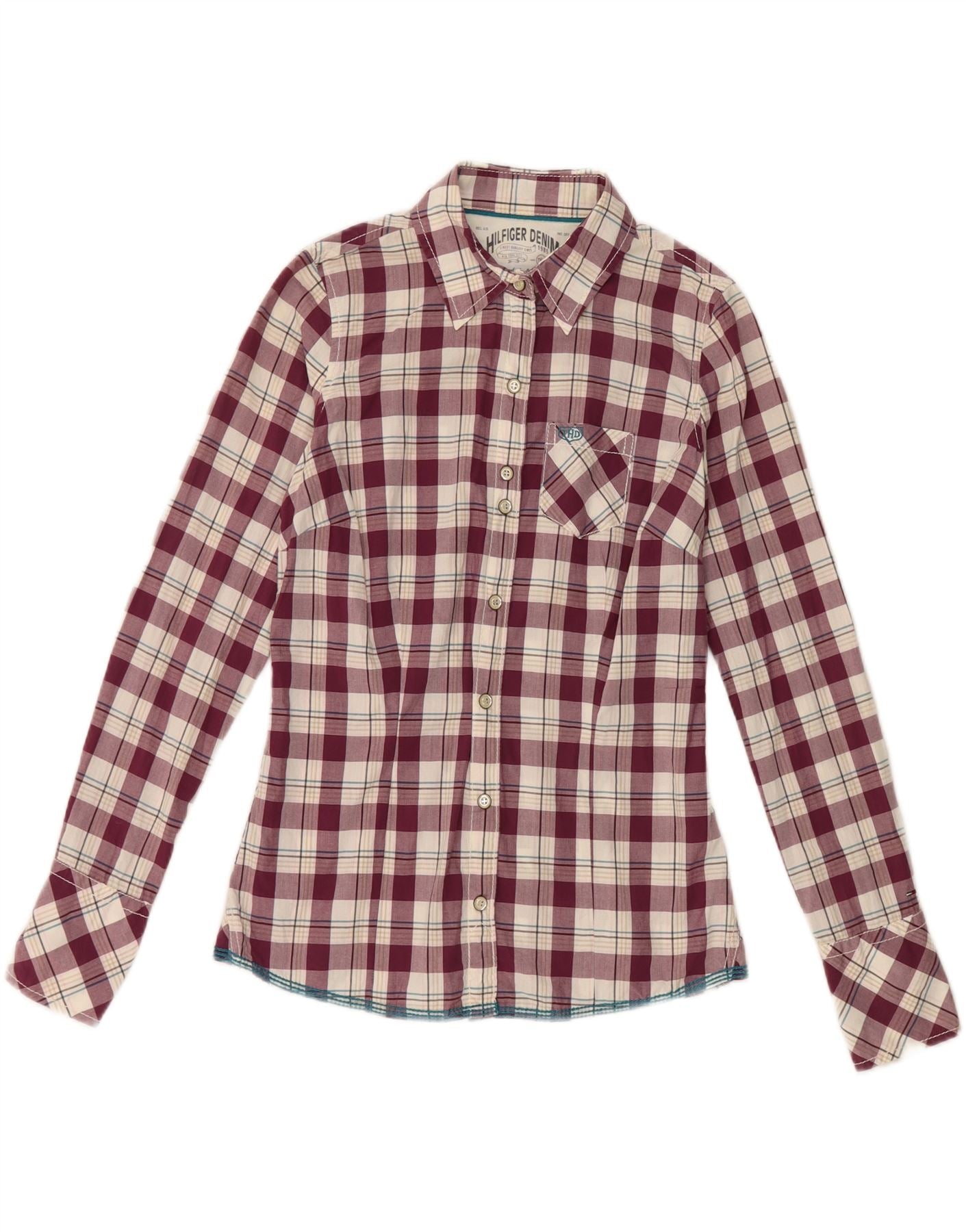 TOMMY HILFIGER Womens Shirt UK 6 XS Burgundy Check Cotton
