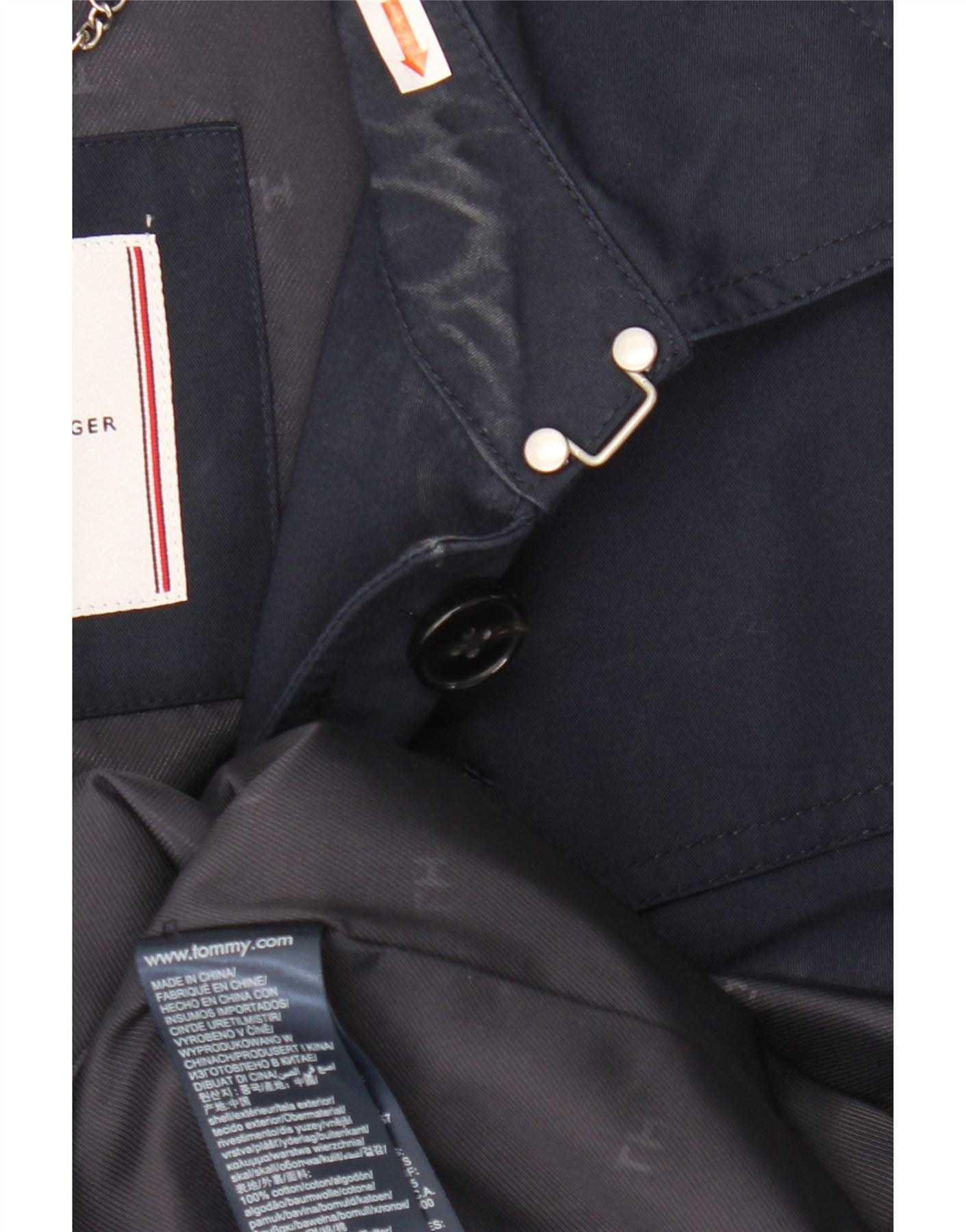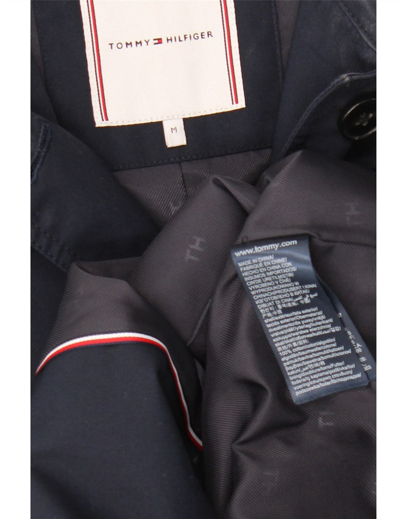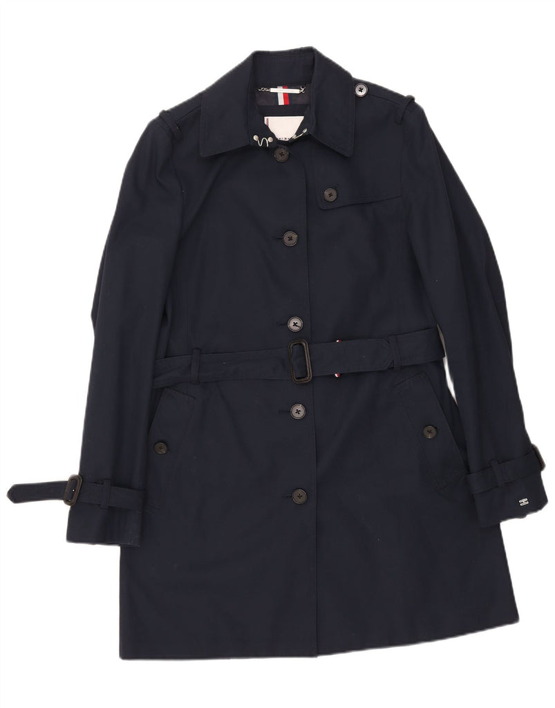 TOMMY HILFIGER Womens Trench Coat UK 14 Medium Navy Blue Cotton