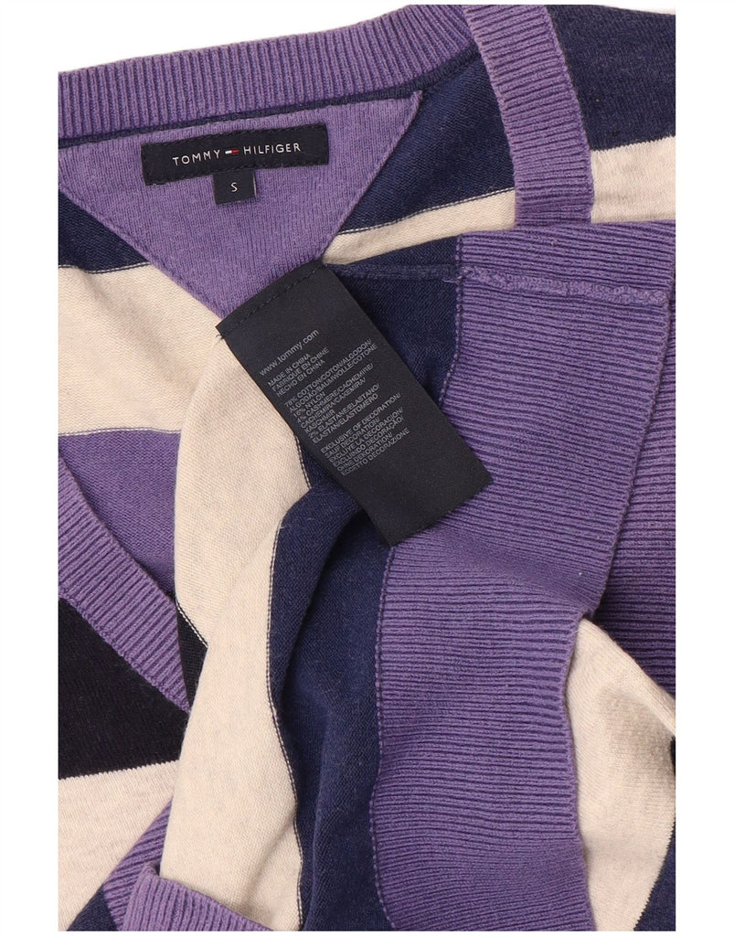 TOMMY HILFIGER Womens V-Neck Jumper Sweater UK 10 Small Purple Striped