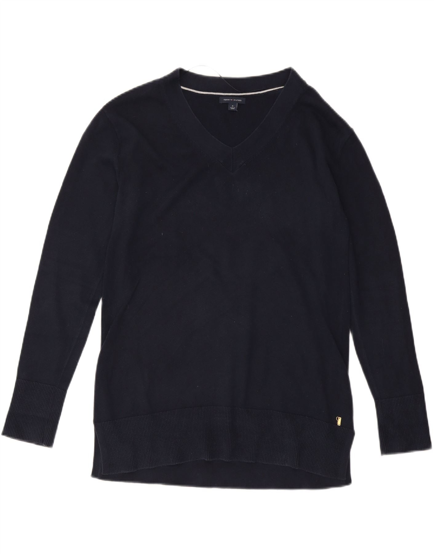 Pulover pentru femei TOMMY HILFIGER Pulover cu decolteu în V UK 14 Mediu Bumbac bleumarin