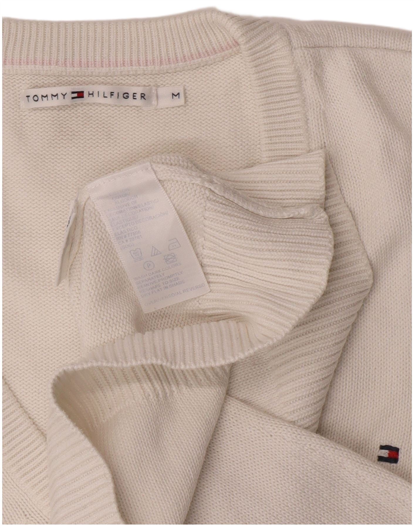 Pulover Tommy Hilfiger pentru femei cu decolteu în V UK 14 Bumbac alb mediu