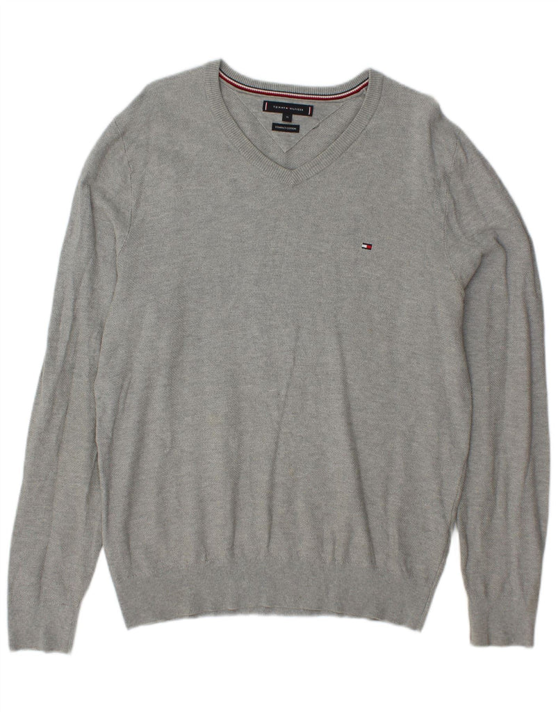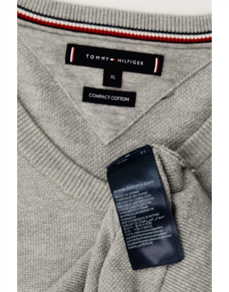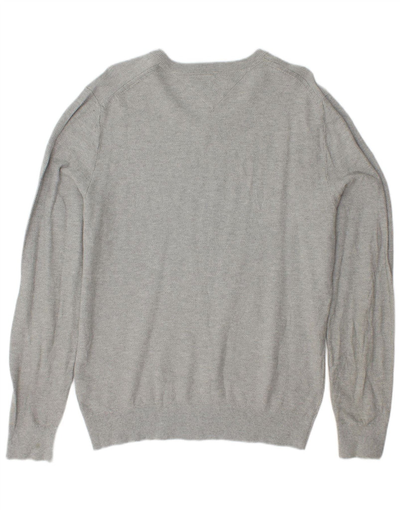 TOMMY HILFIGER Womens V-Neck Jumper Sweater UK 18 XL Grey Cotton