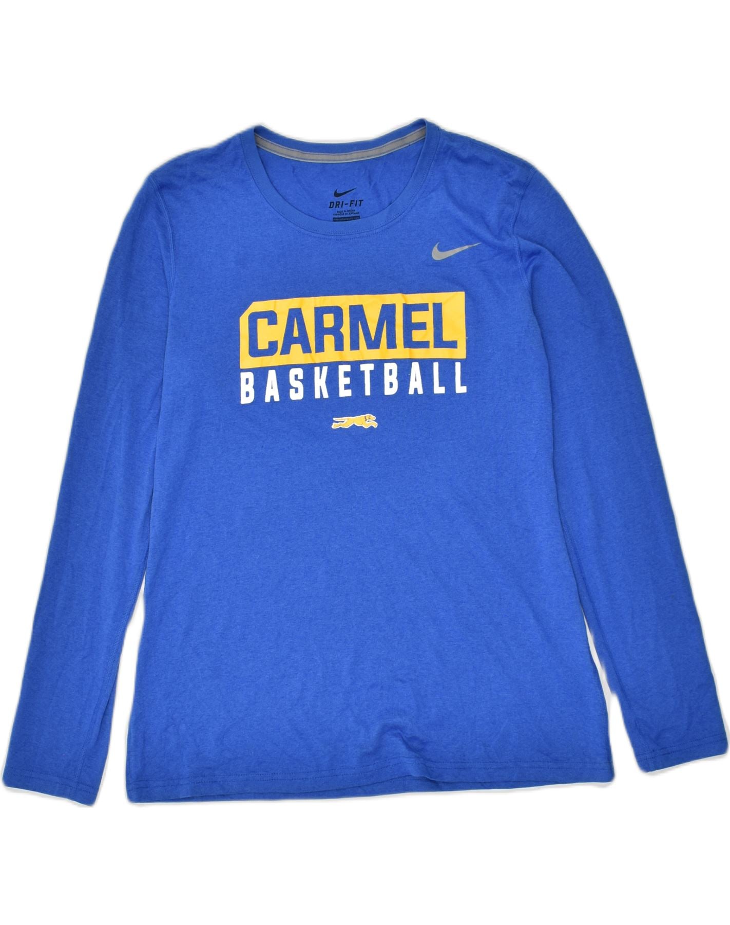 Top grafic NIKE Dri Fit pentru femei cu mânecă lungă UK 14, mare, albastru, poliester