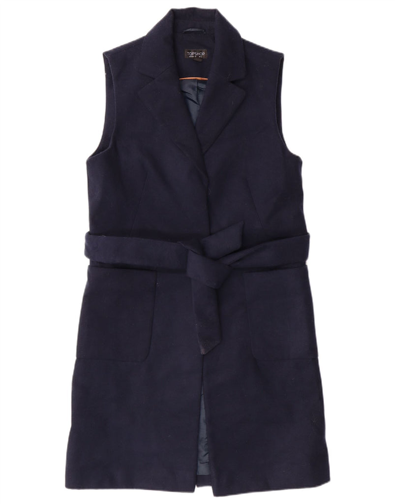 TOPSHOP Womens Longline Sleeveless Blazer Jacket UK 6 XS Navy Blue