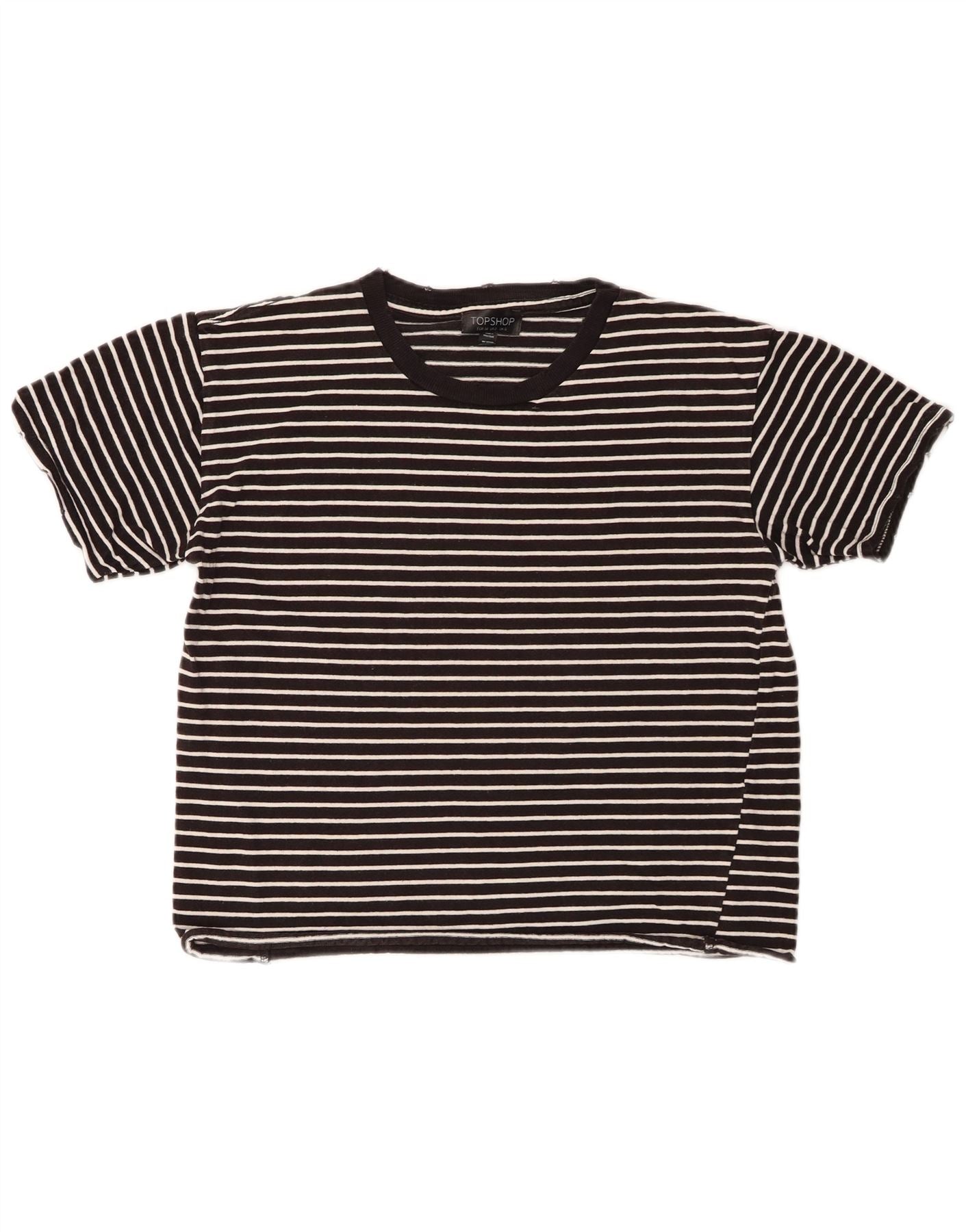 TOPSHOP Womens Oversized Crop T-Shirt Top UK 6 XS Black Striped Cotton