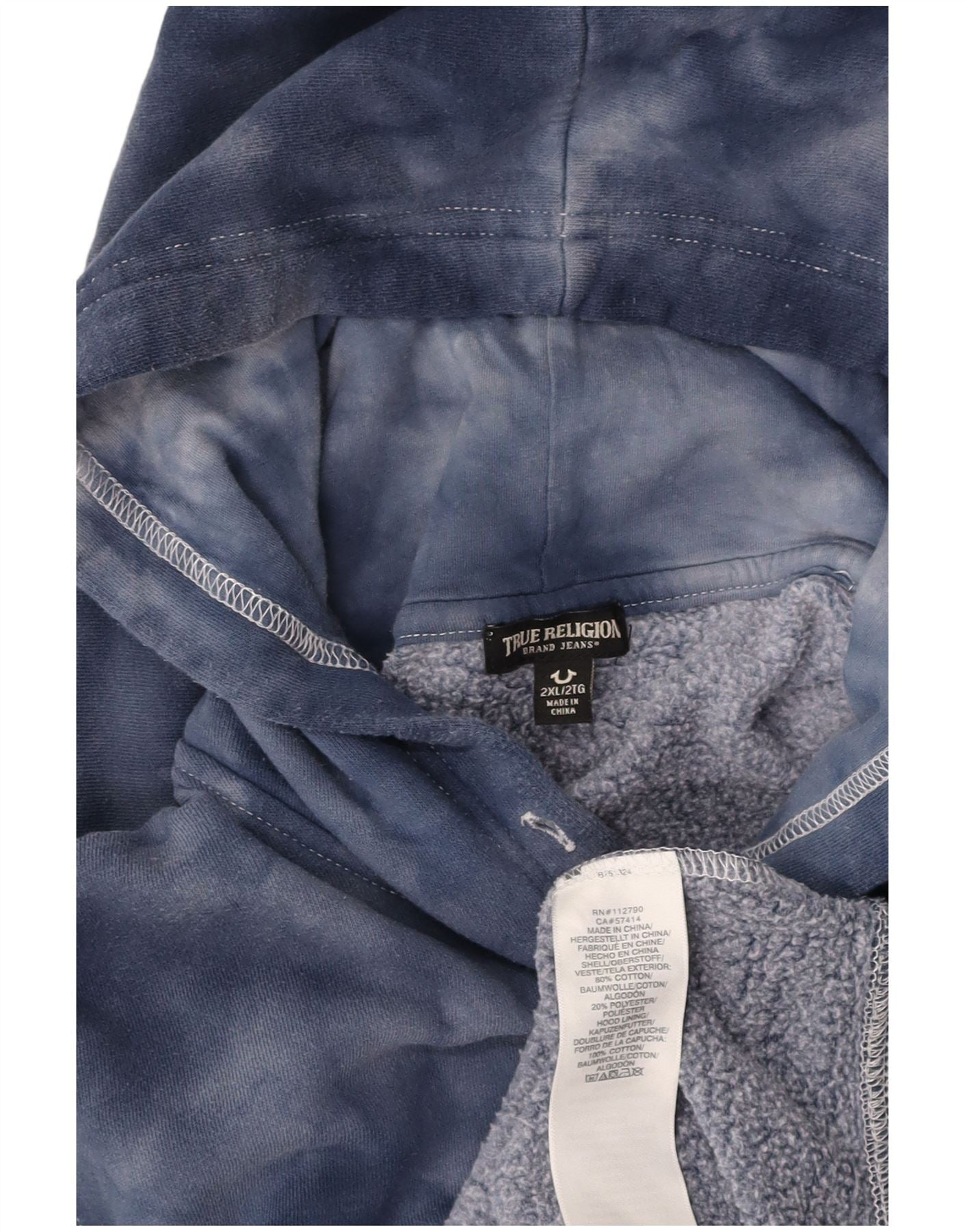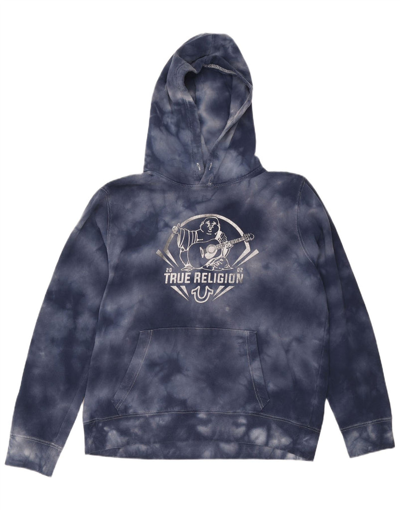 TRUE RELIGION Mens Graphic Hoodie Jumper 2XL Navy Blue Tie Dye Cotton