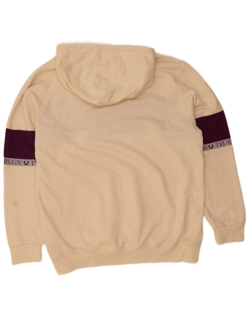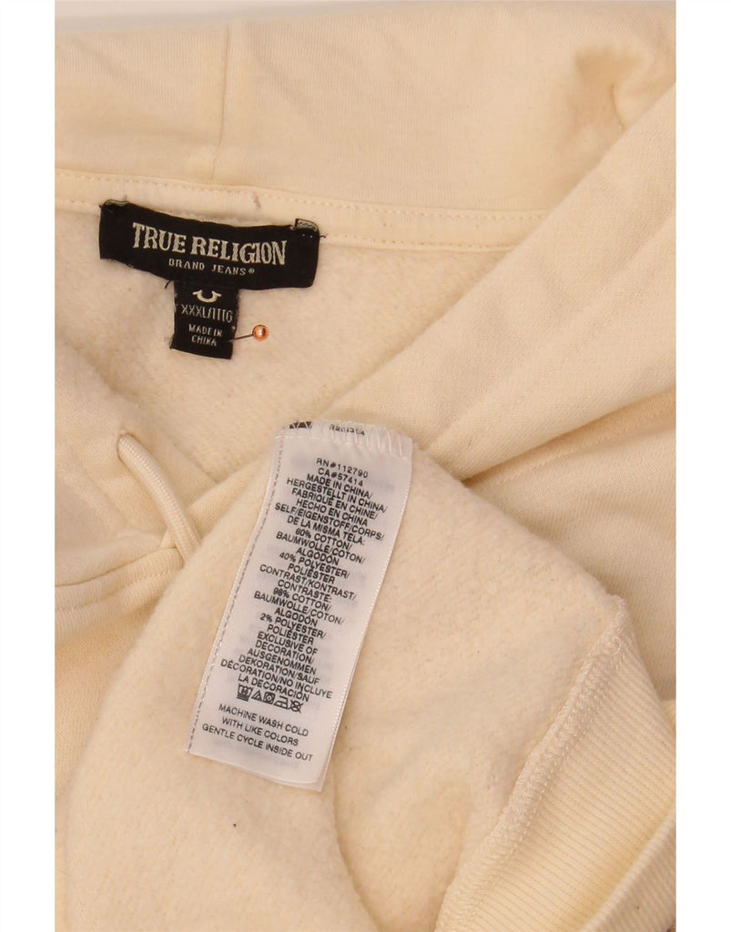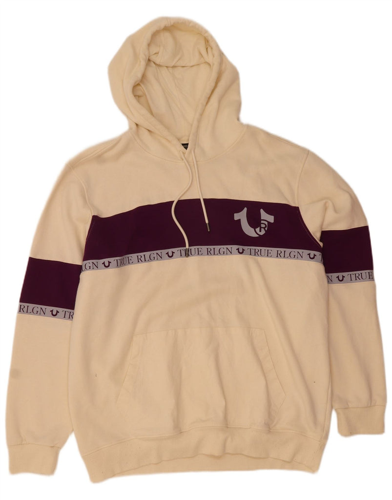TRUE RELIGION Mens Graphic Hoodie Jumper 3XL Off White Colourblock Cotton