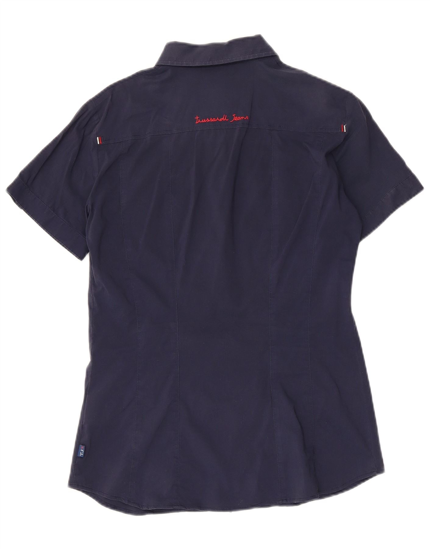 TRUSSARDI JEANS Cămașă cu mânecă scurtă pentru femei UK 12 Medium bleumarin bumbac