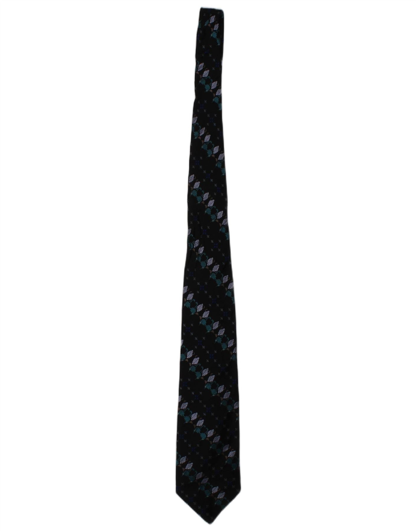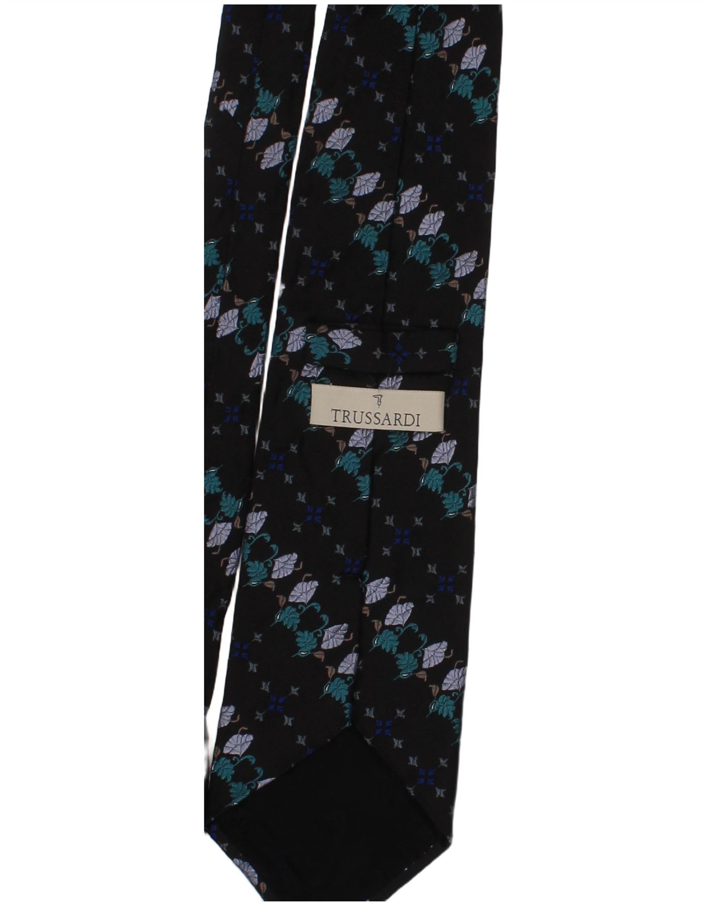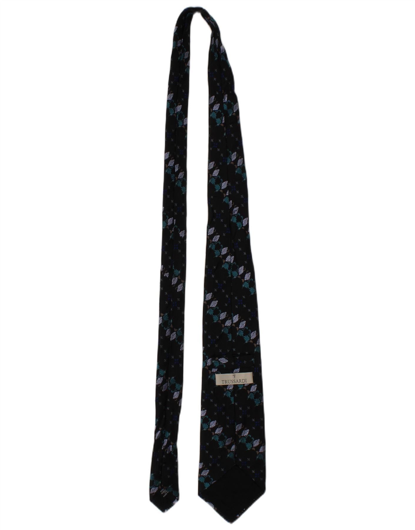 TRUSSARDI Mens Graphic Tie One Size Navy Blue Floral Silk Classic