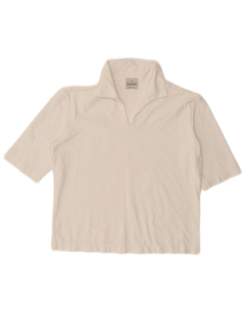 TRUSSARDI Tricou polo crop pentru femei UK 12 Poliamidă albă medie