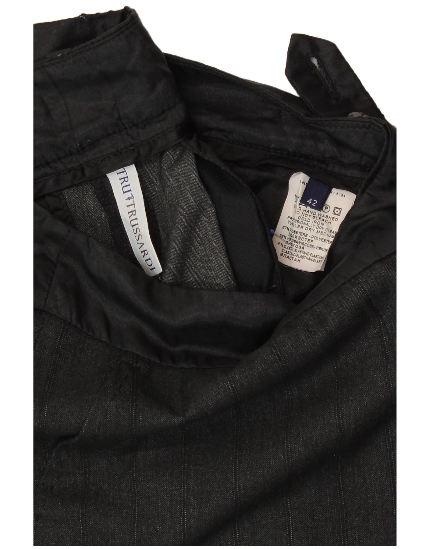 TRUSSARDI Womens Suit Trousers IT 42 Medium W30 L31 Grey Pinstripe