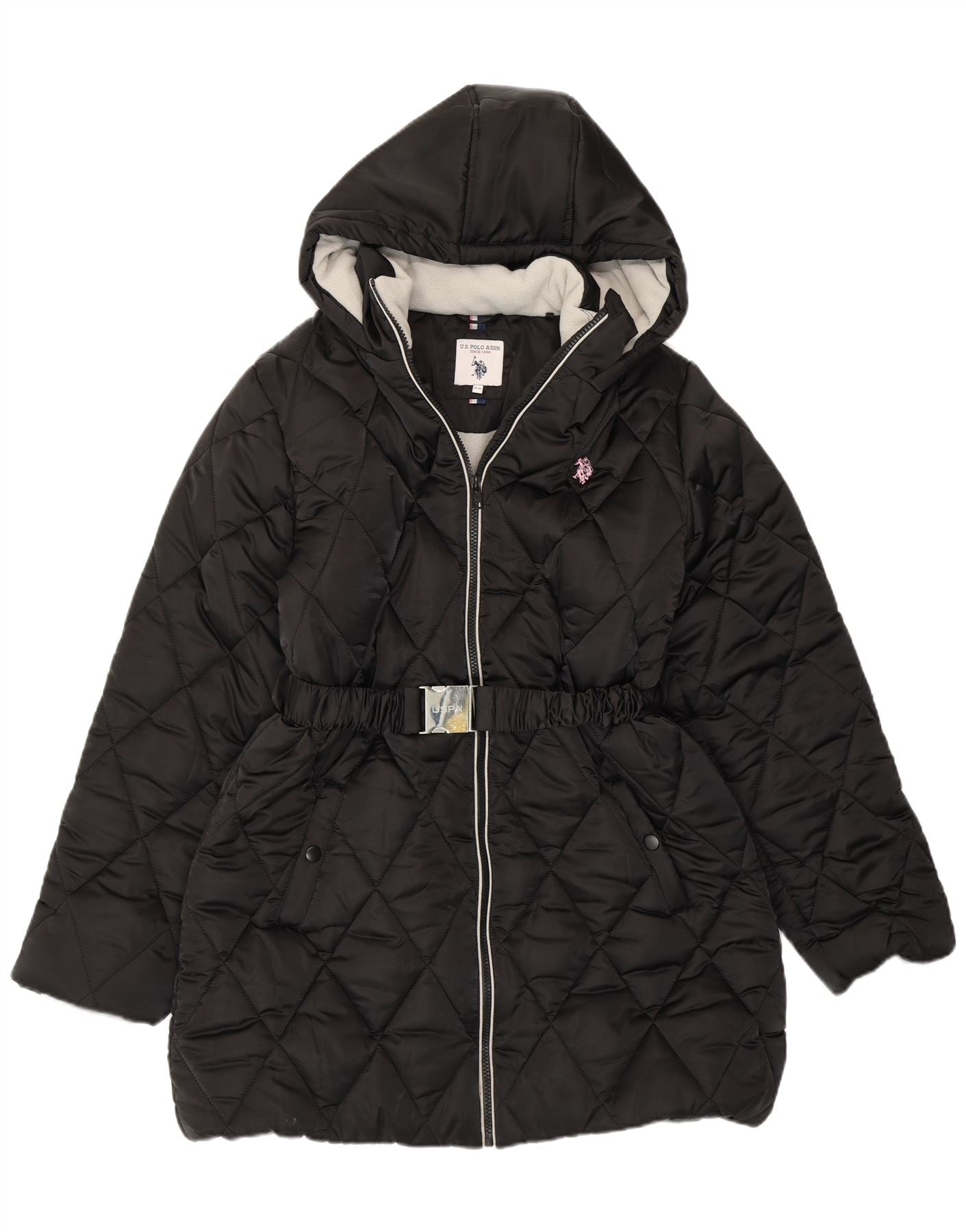 U.S. Polo Assn. Jachetă căptușită cu glugă pentru fete 15-16 ani poliester negru