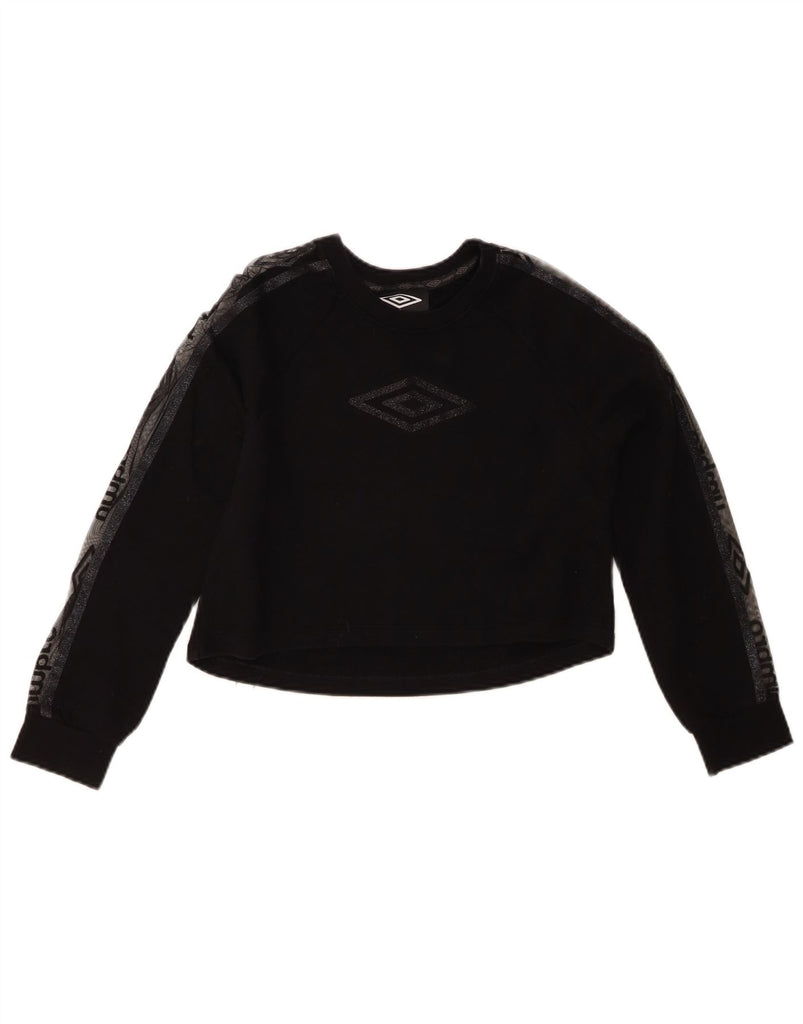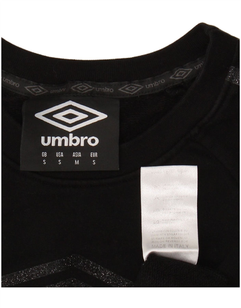 UMBRO Womens Graphic Crop Sweatshirt Jumper UK 10 Small Black Cotton