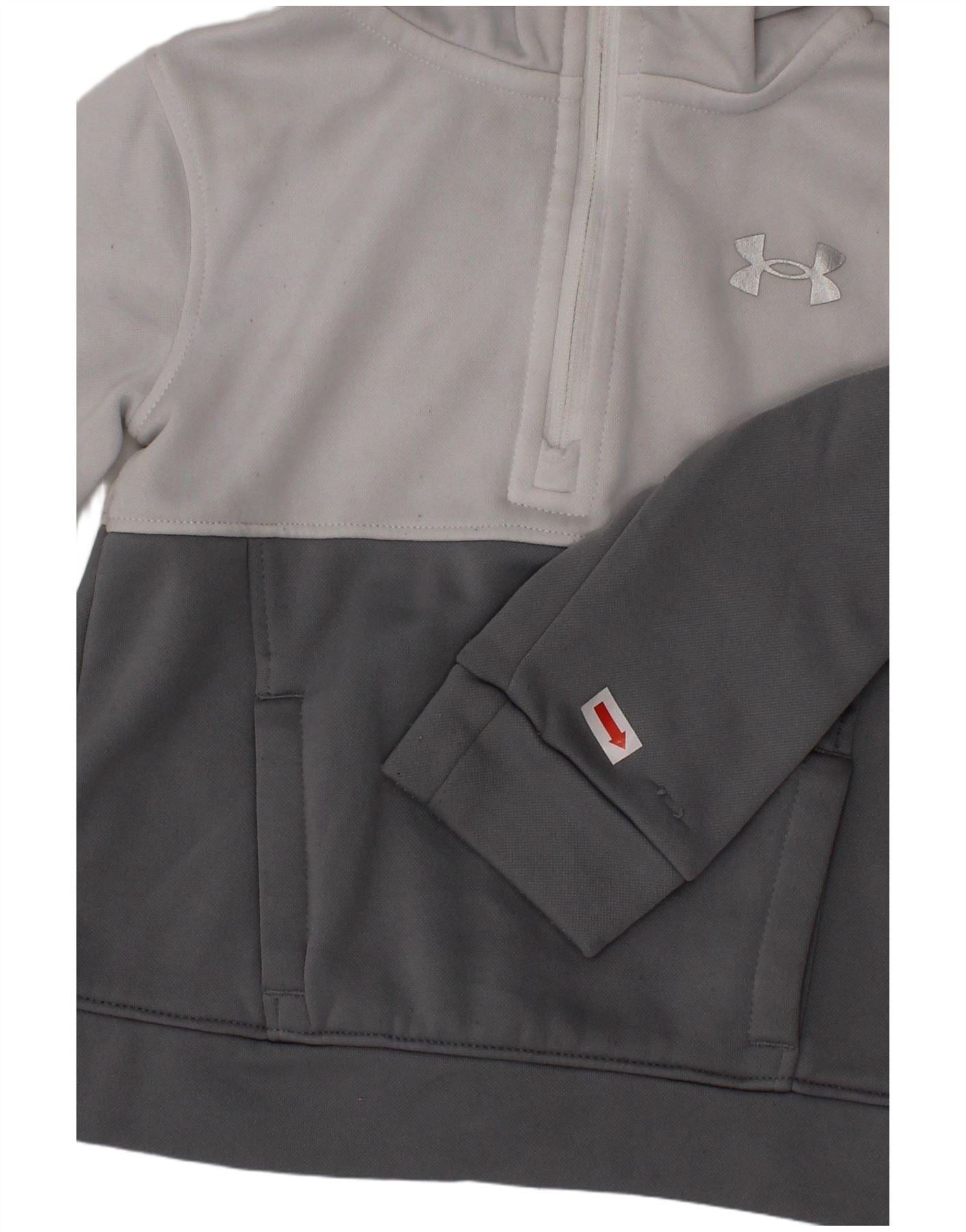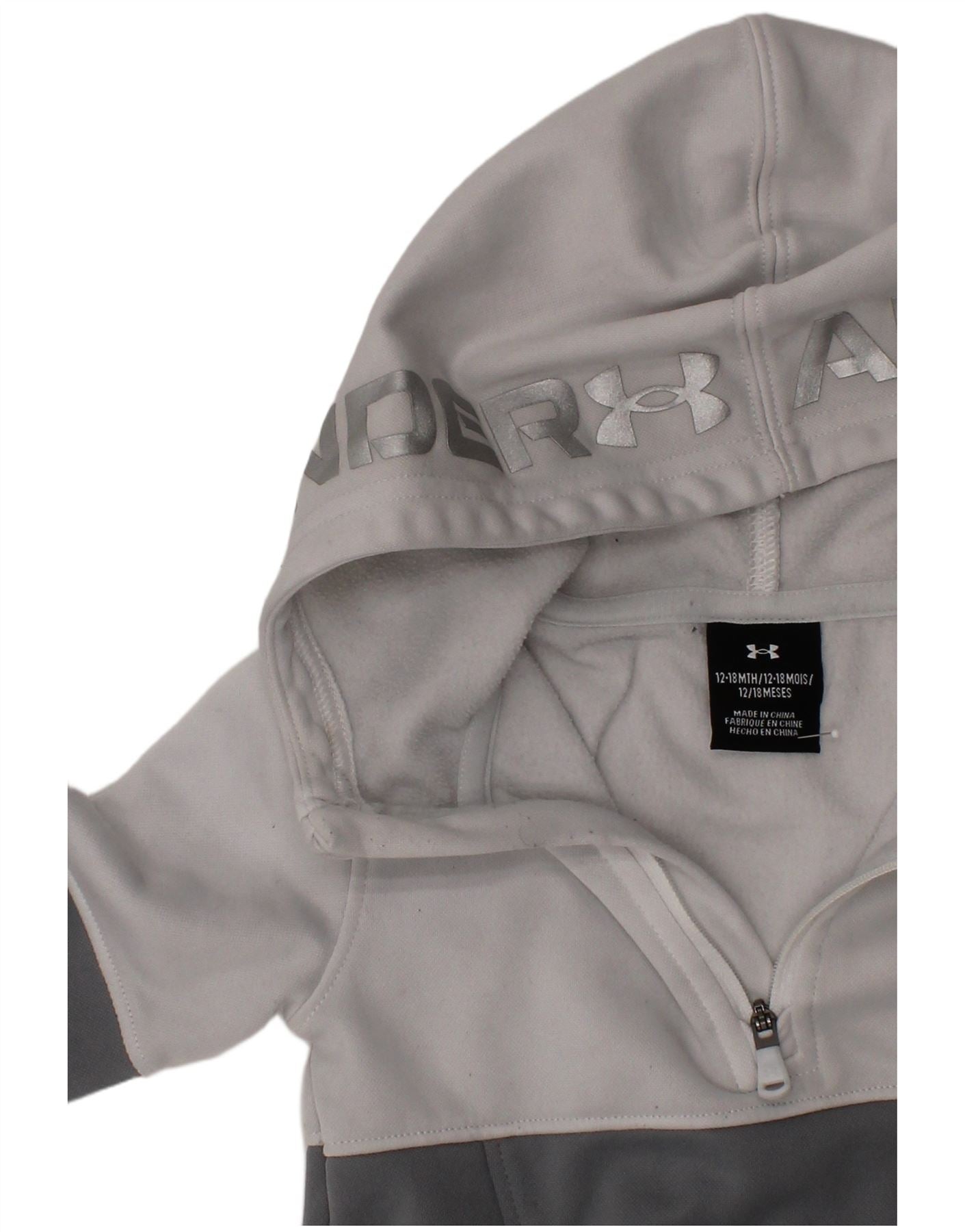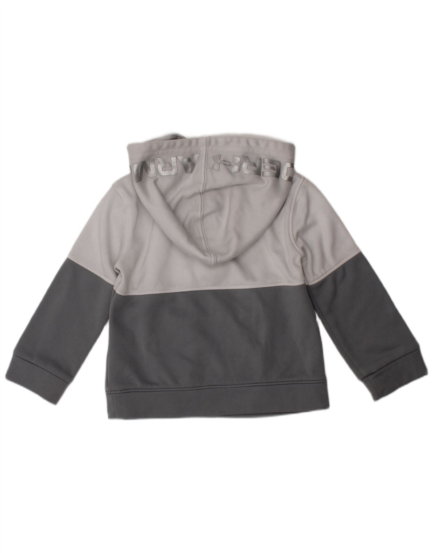 UNDER ARMOUR Baby Boys Graphic Hoodie Jumper 12-18 Months Grey Colourblock