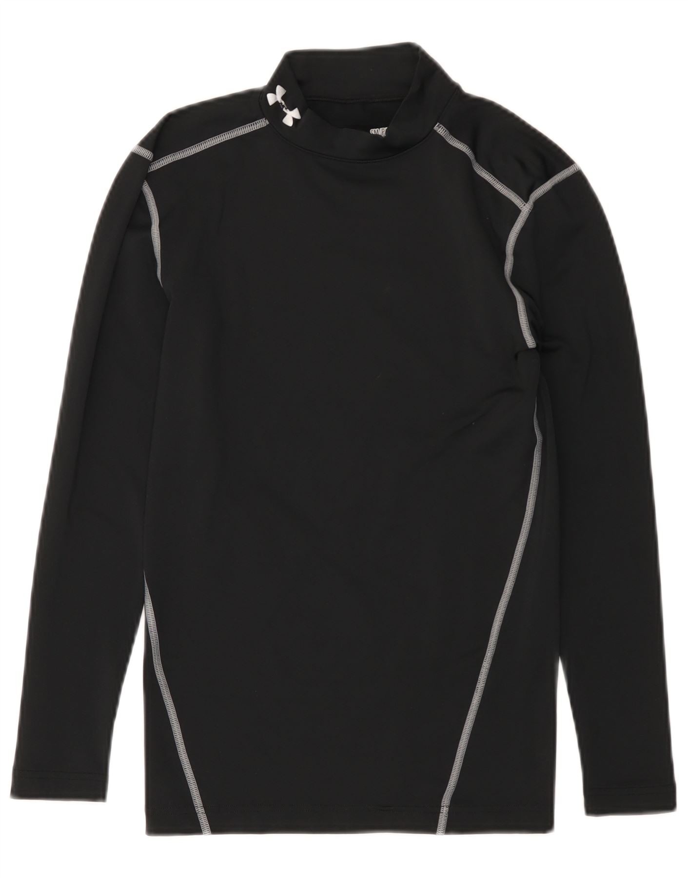 - Descriere AI: Acest top cu mânecă lungă pentru băieți Under Armour este confecționat dintr-o țesătură amestecată neagră, oferind un finisaj neted și elastic. Are un gât fals și mâneci lungi, concepute pentru o potrivire foarte subțire. Stilul ColdGear Compression include proprietăți respirabile pentru confort. Un accent subtil de logo completează designul atletic, asigurând performanțe optime.