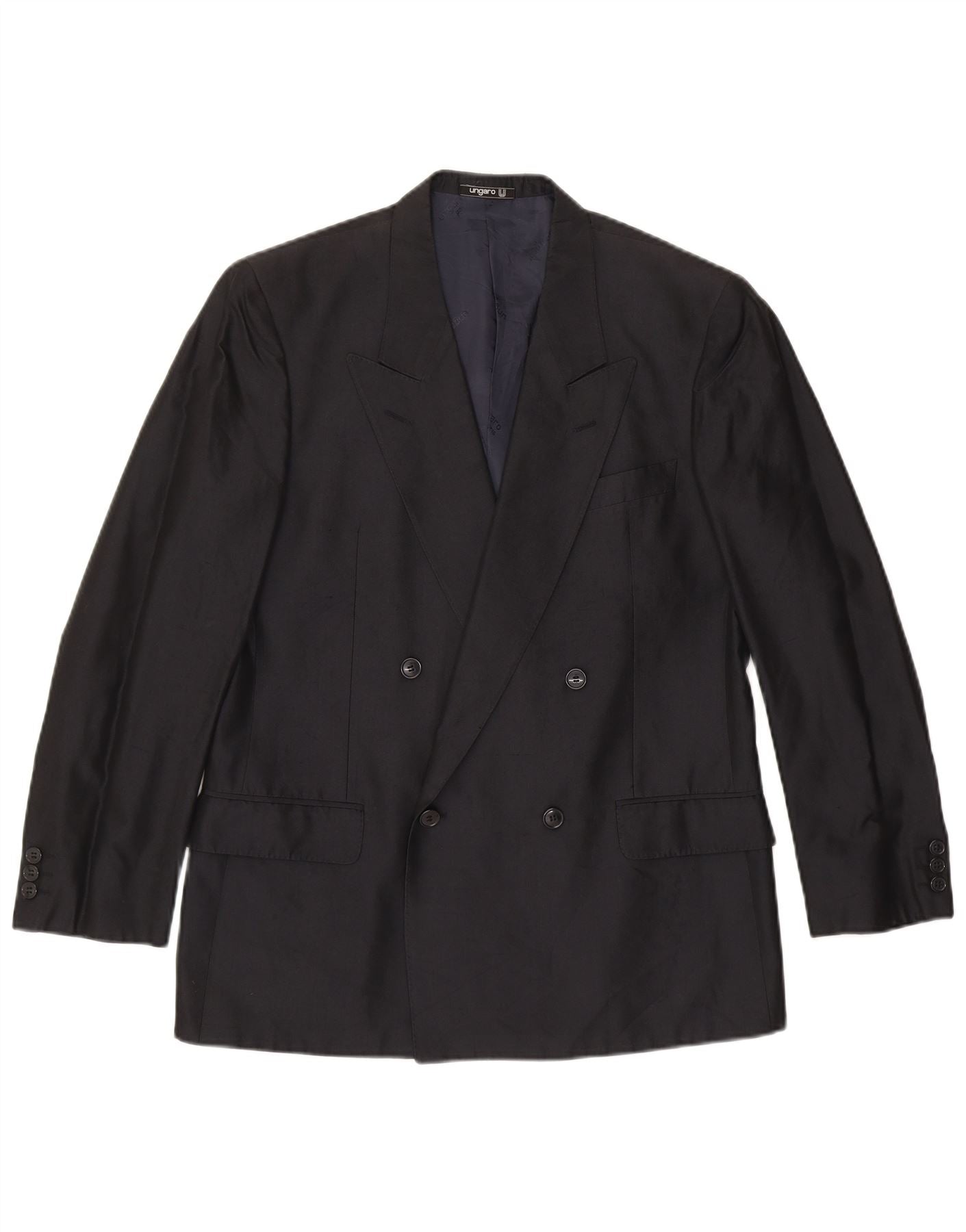 UNGARO Mens Double Breasted Blazer Jacket IT 50 Large Black Silk