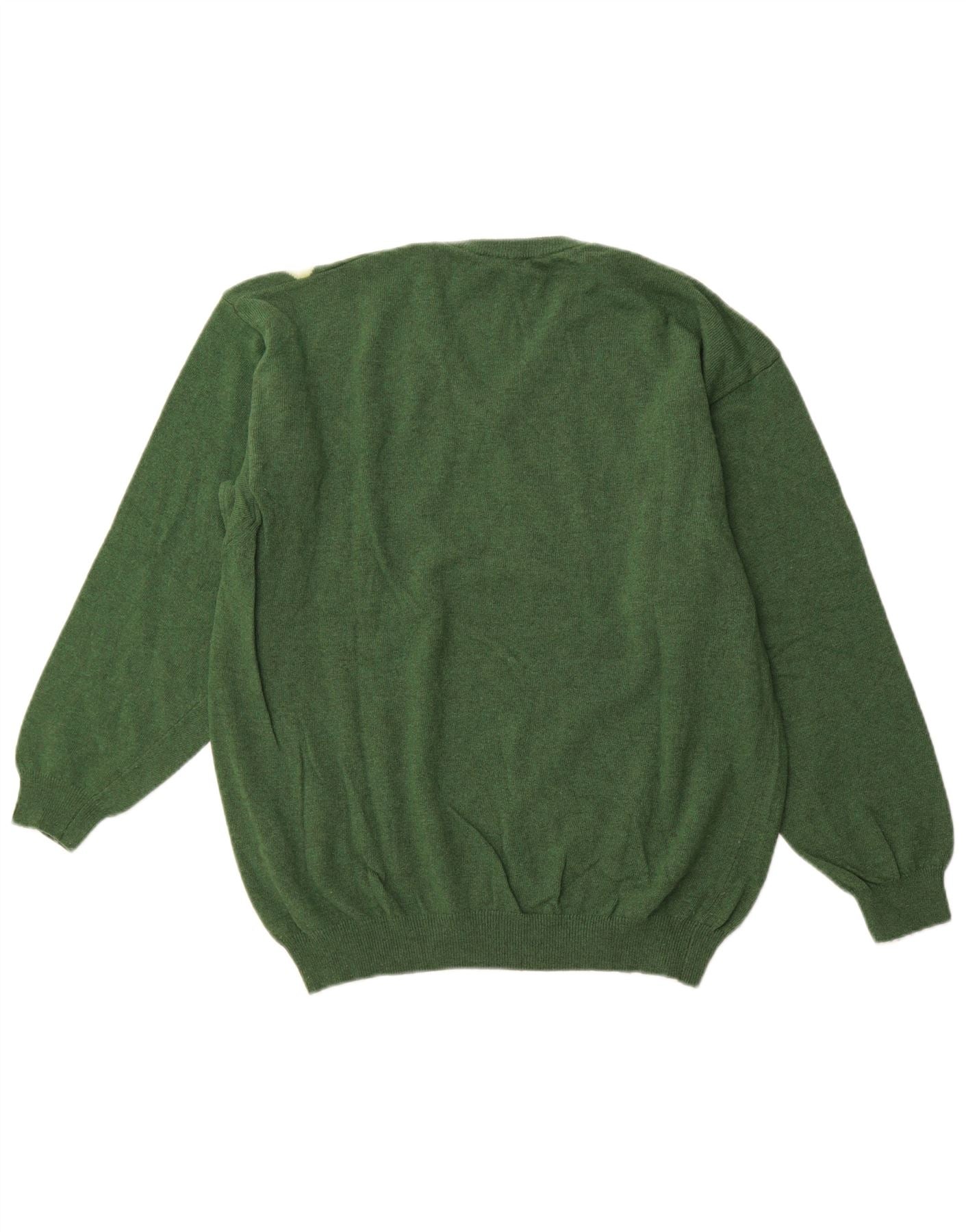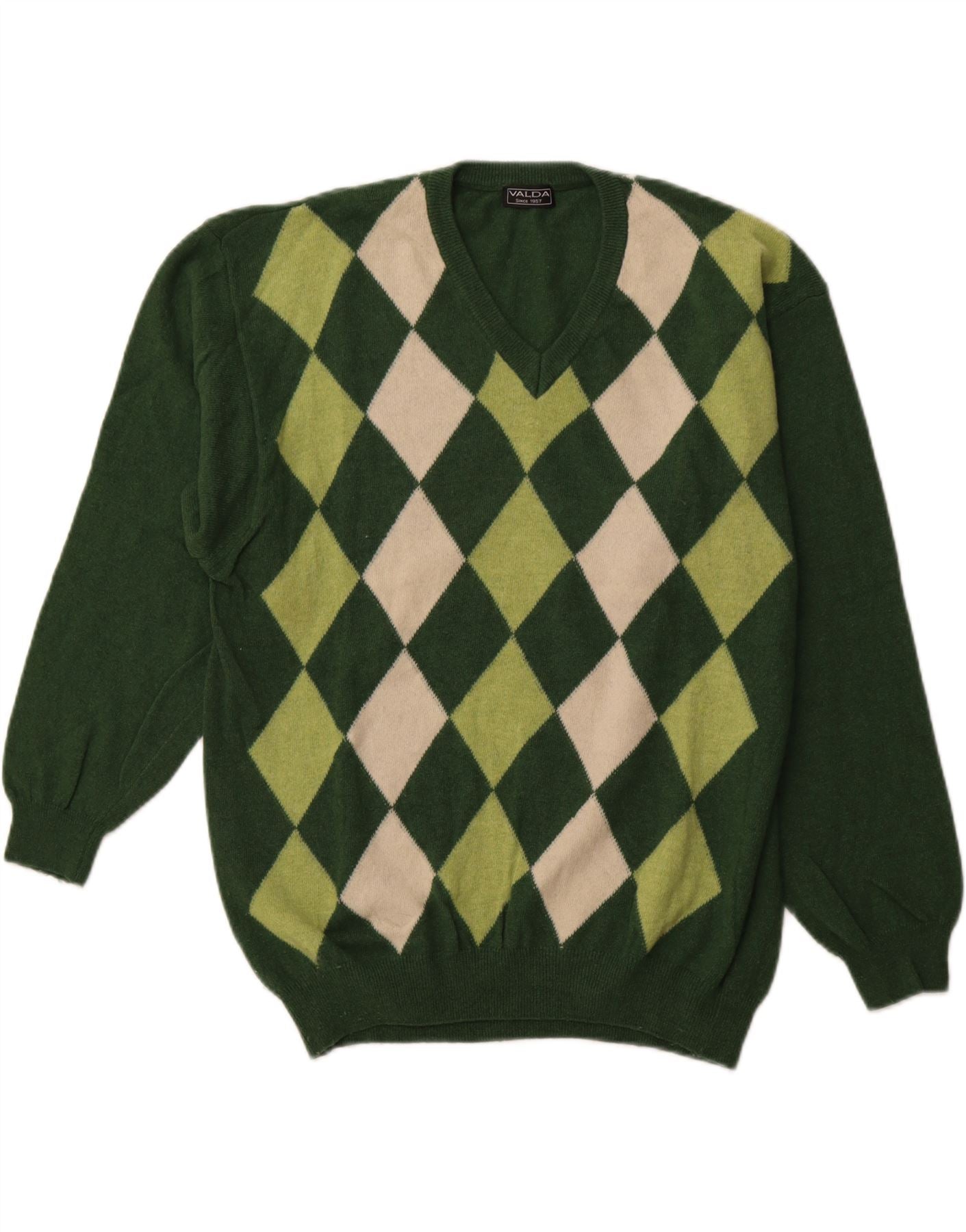 Pulover cu decolteu în V VALDA pentru bărbați, lână verde mare Argyle/Diamond