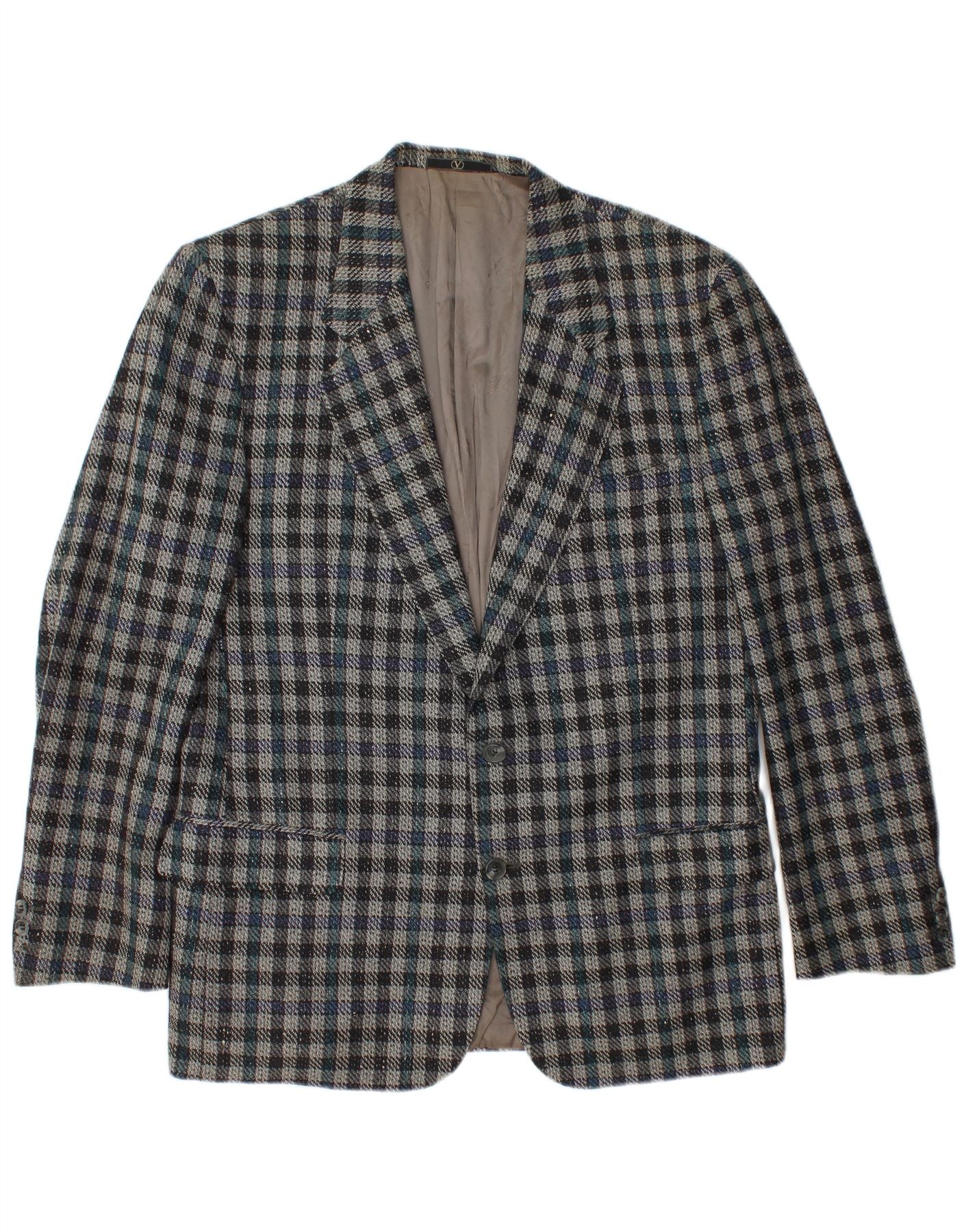 VALENTINO Jachetă pentru bărbați cu 2 nasturi IT 50 Lână virgină mare cu carouri albastre