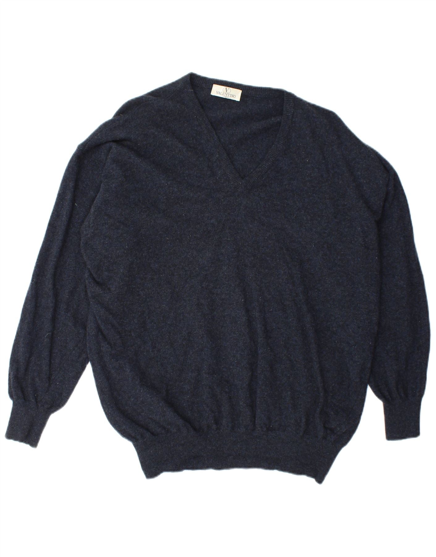 VALENTINO Pulover cu decolteu în V pentru bărbați XL Lână cu pete albastru bleumarin