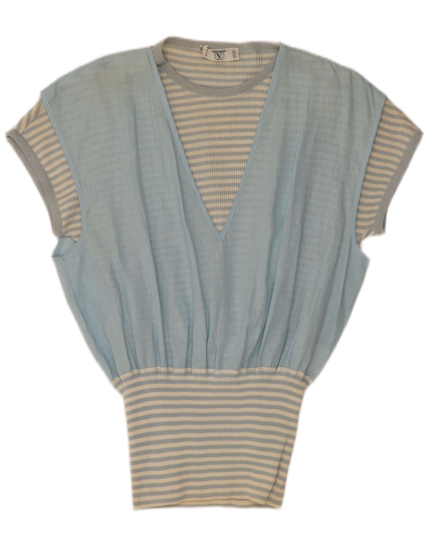 VALENTINO Womens Crew Neck Jumper Sweater IT 48 XL Blue Striped