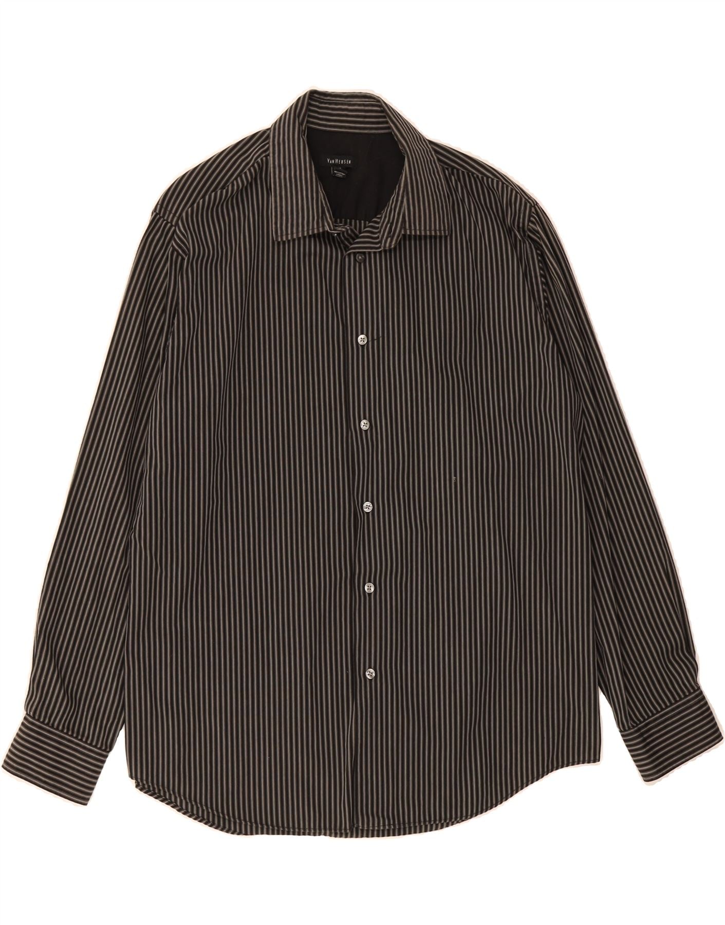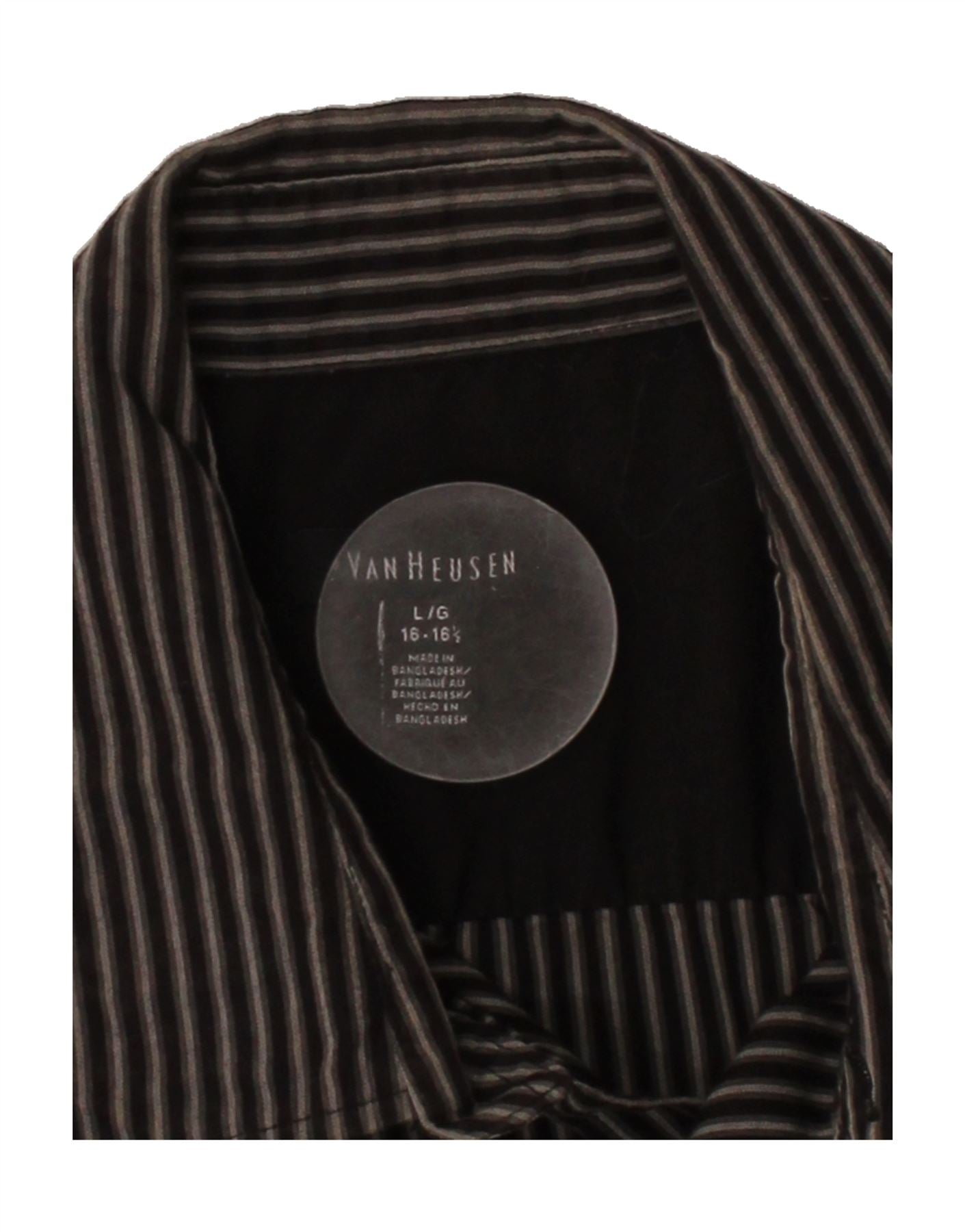 VAN HEUSEN Mens Shirt Size 16 1/2 Large Black Pinstripe Cotton
