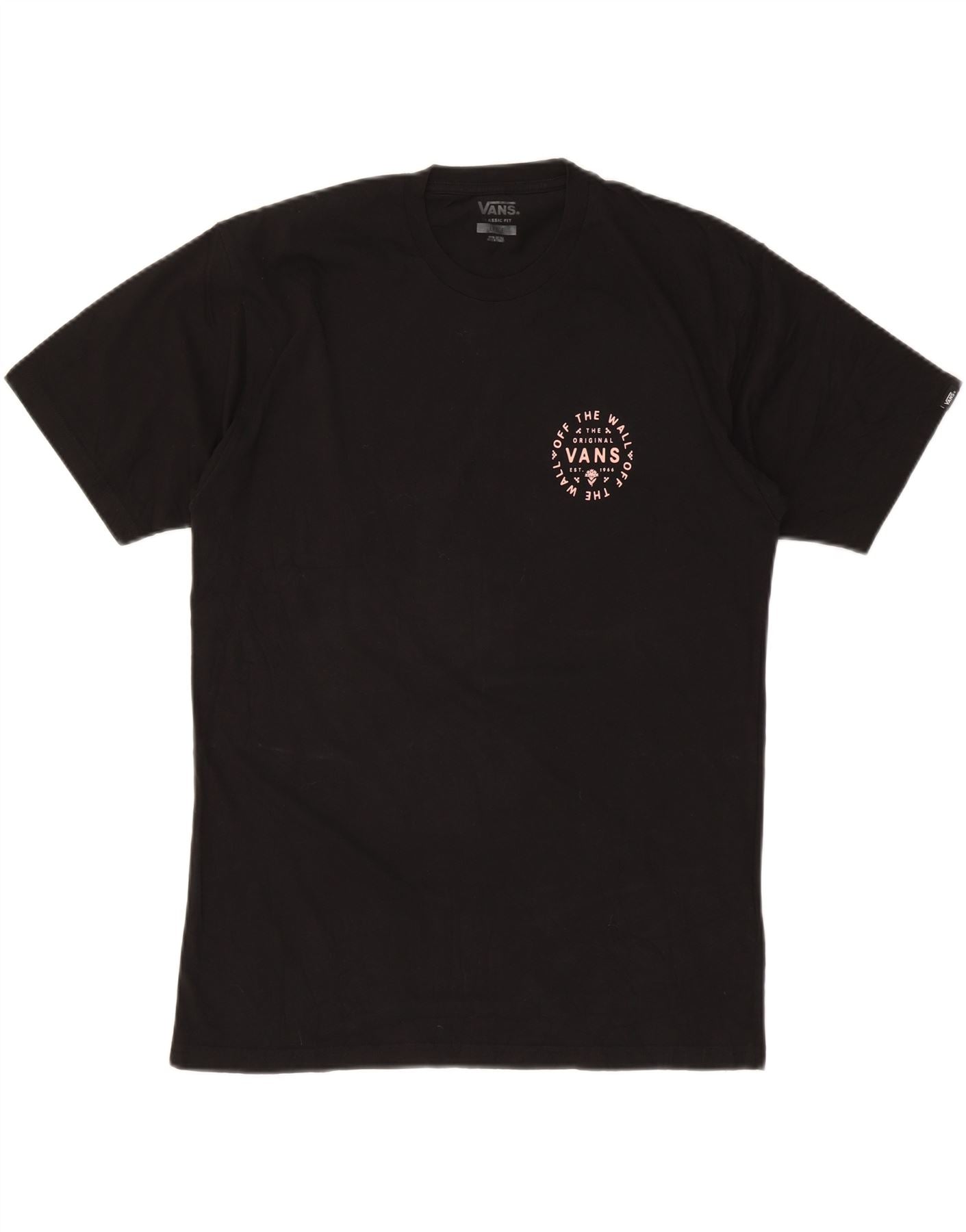 - Descriere AI: Acest top cu tricou grafic Vans pentru bărbați este confecționat din jerse moale, negru, 100% bumbac. Are un gât rotund clasic și mâneci scurte pentru confort de zi cu zi. Potrivirea clasică oferă o siluetă relaxată, ușor de purtat. Un logo subtil în față adaugă identitatea mărcii. Spatele prezintă un design grafic mai mare și complicat, sporind stilul său distinctiv.