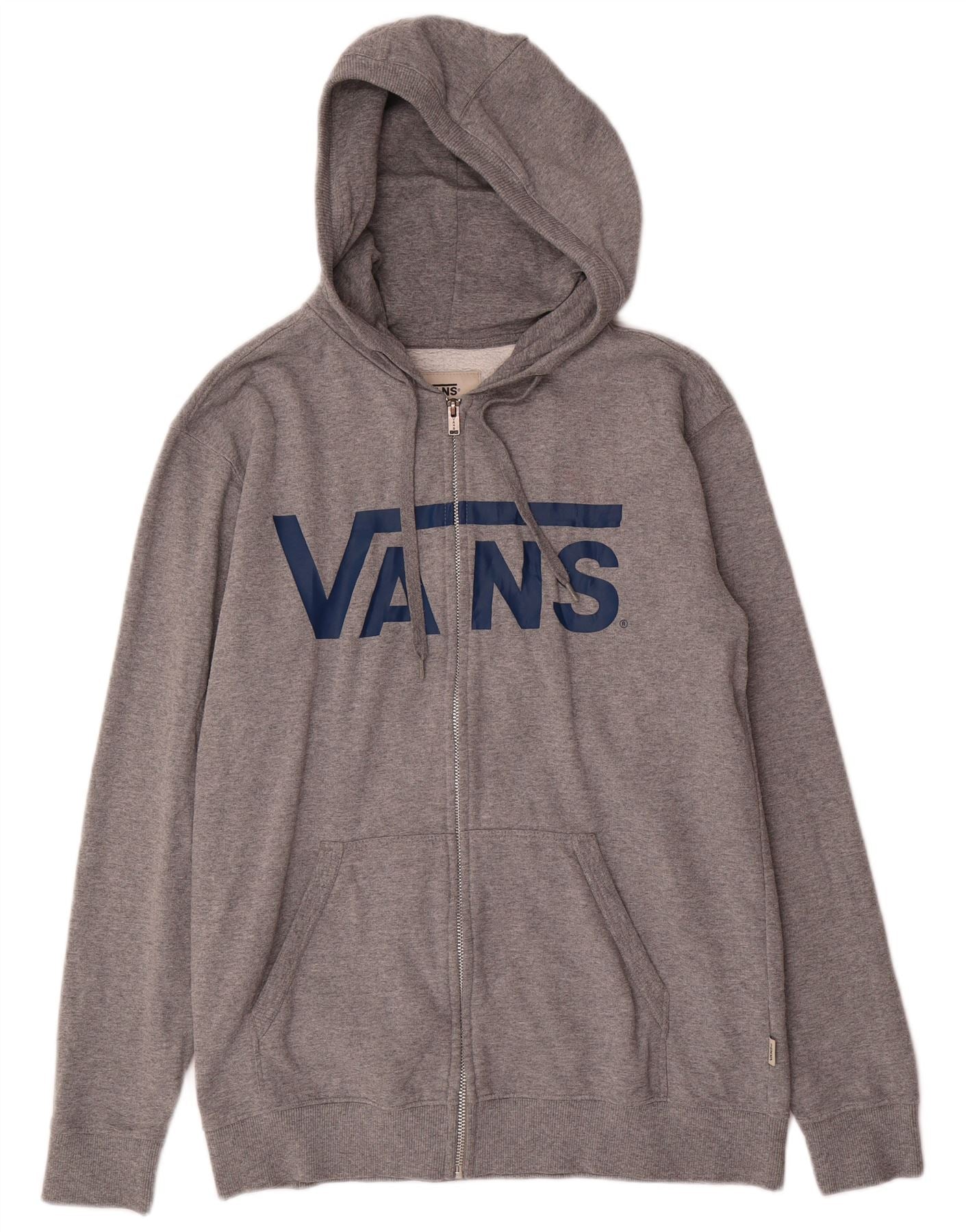 VANS Pulover cu capota cu fermoar grafic pentru bărbați, bumbac, gri mediu
