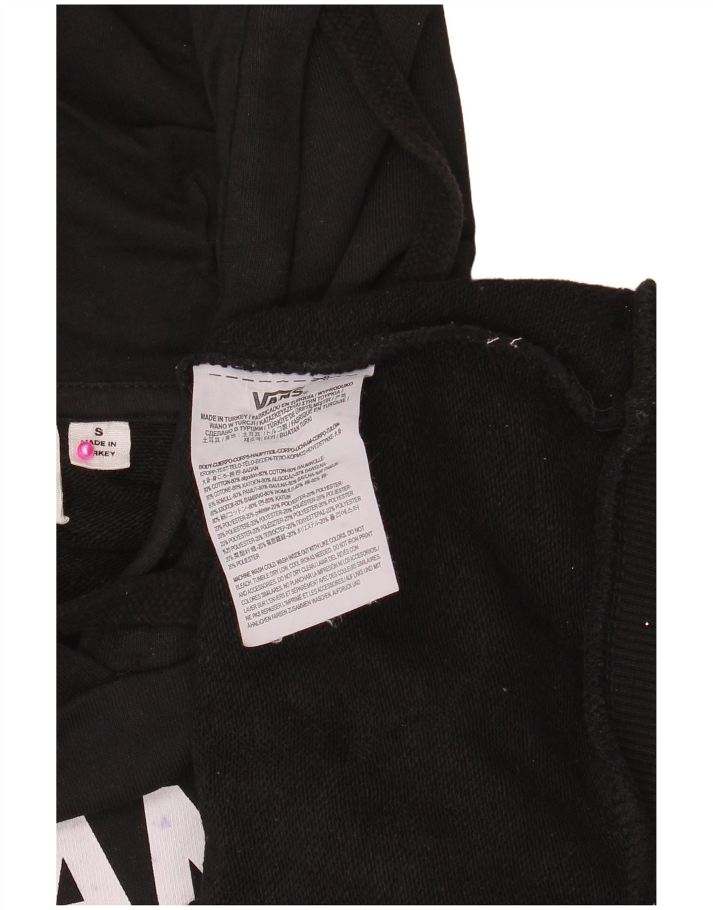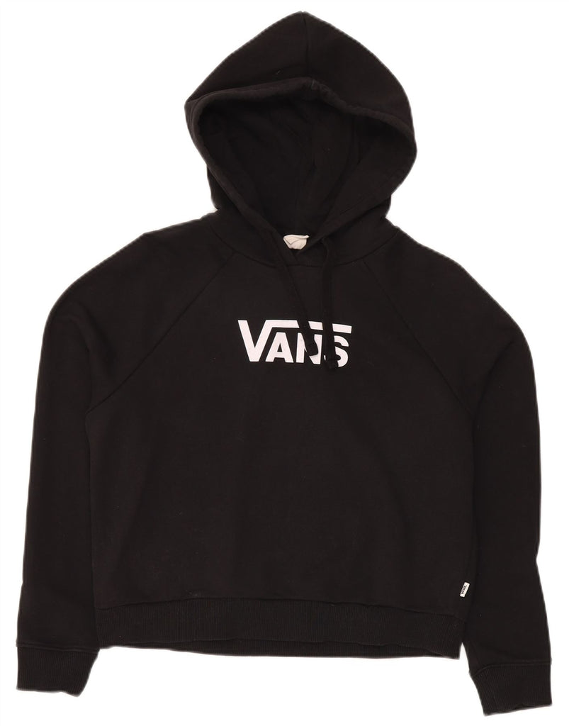 VANS Womens Oversized Crop Graphic Hoodie Jumper UK 10 Small Black Cotton