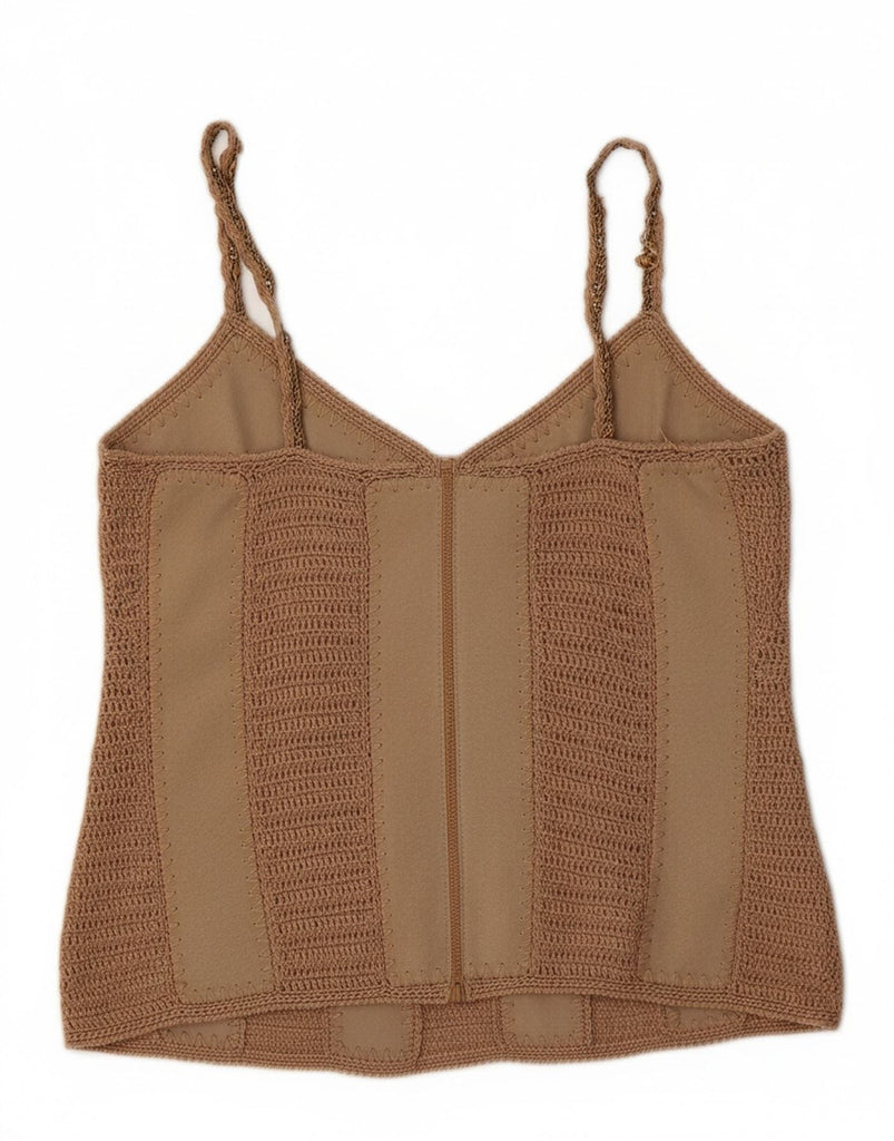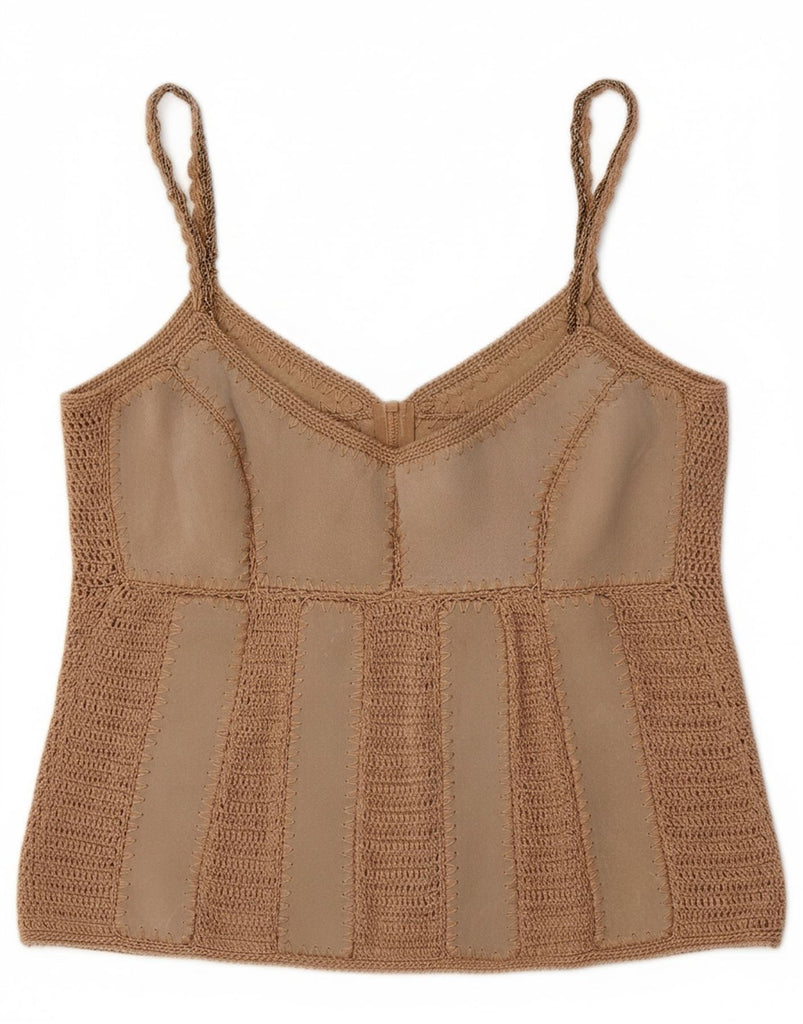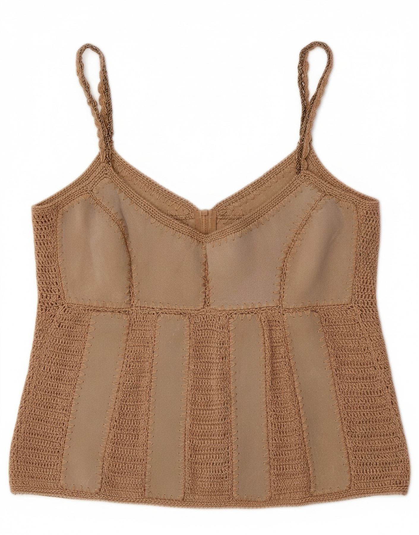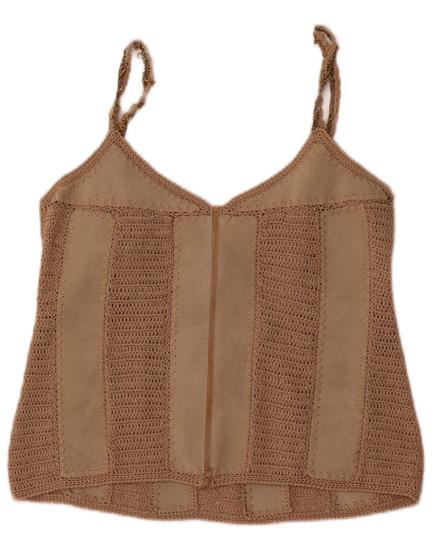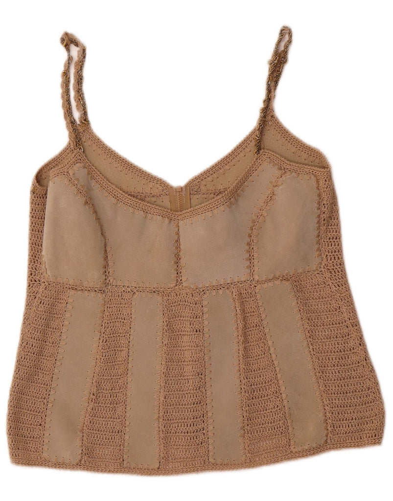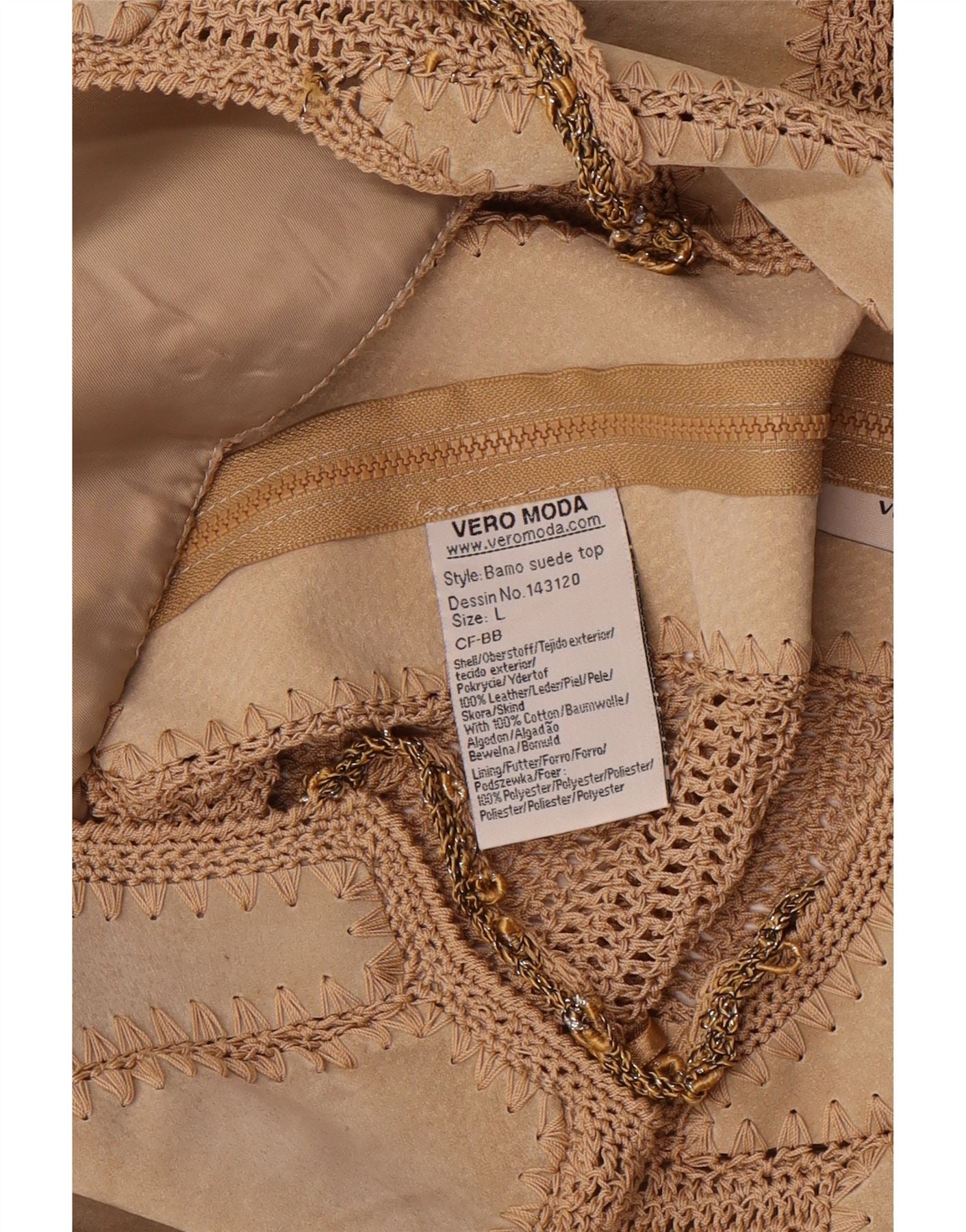 VERO MODA Womens Crop Suede Cami Top UK 14 Large Beige Leather