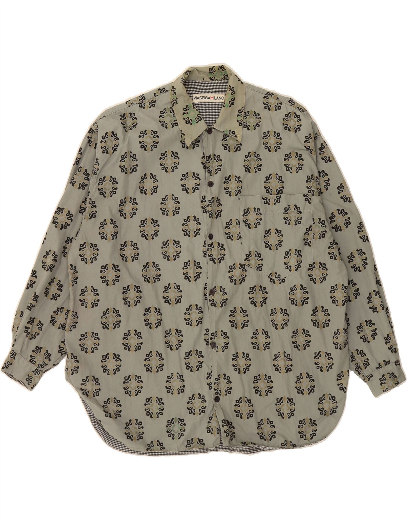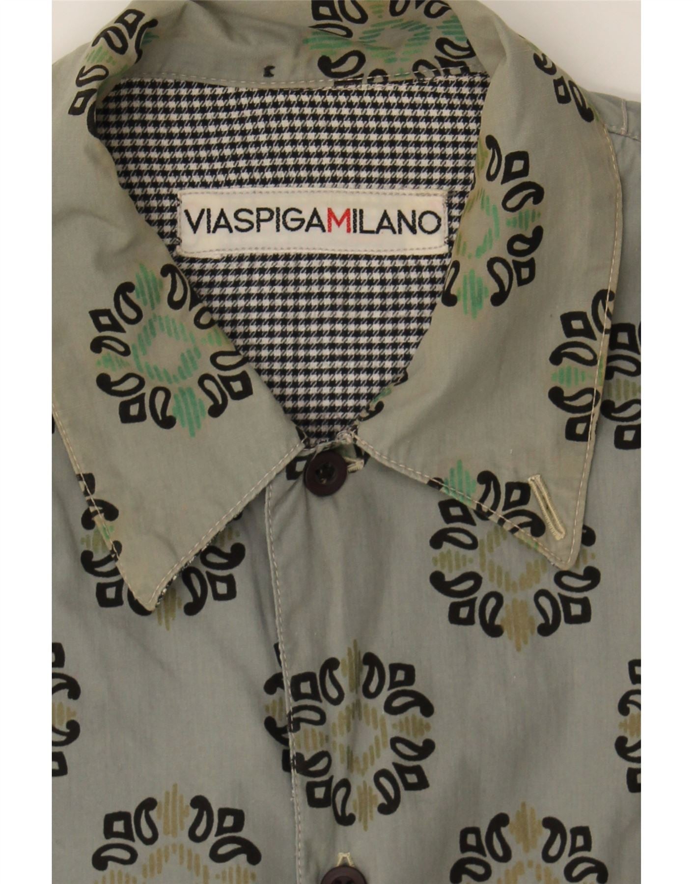 VIA SPIGA Mens Shirt Large Green Paisley
