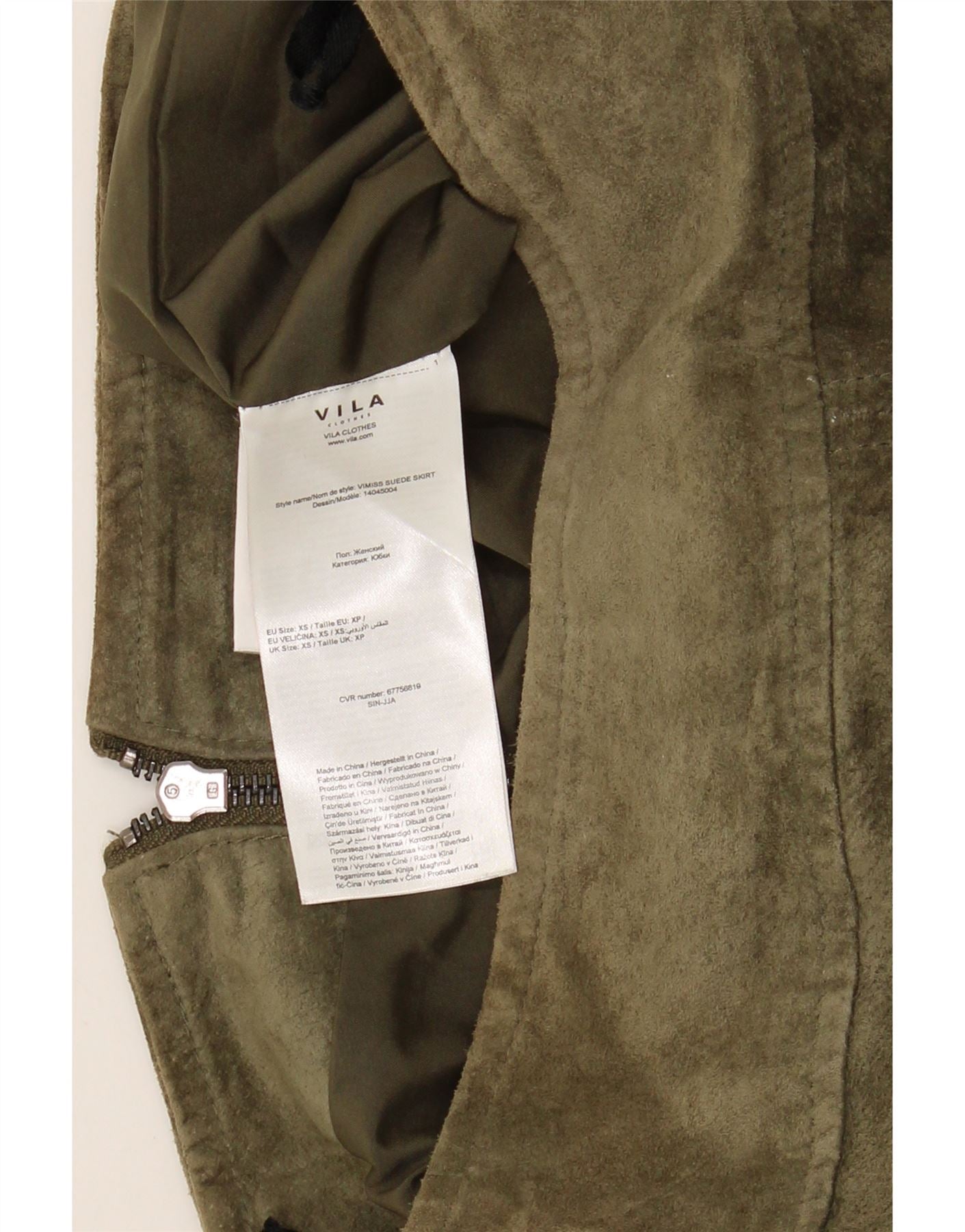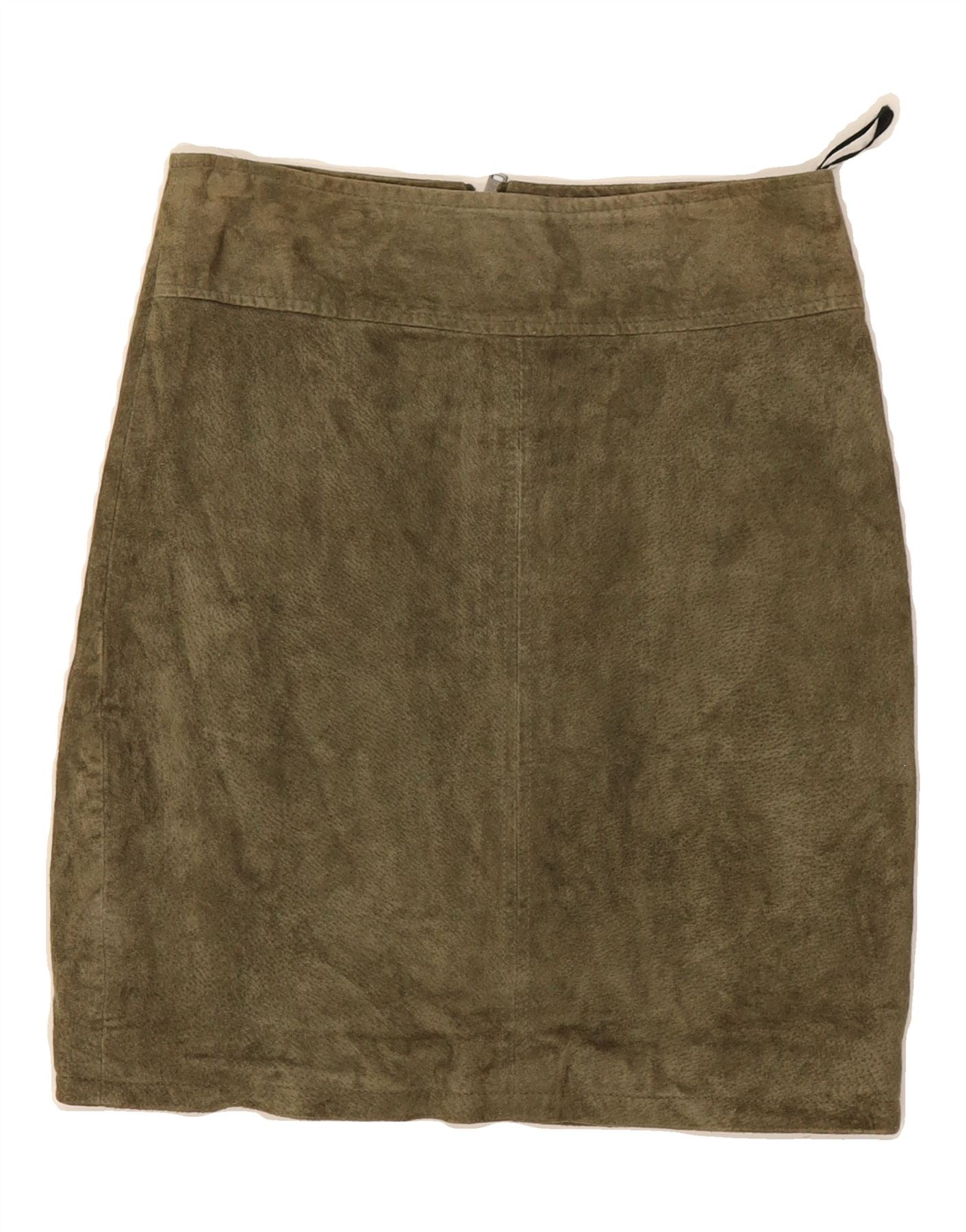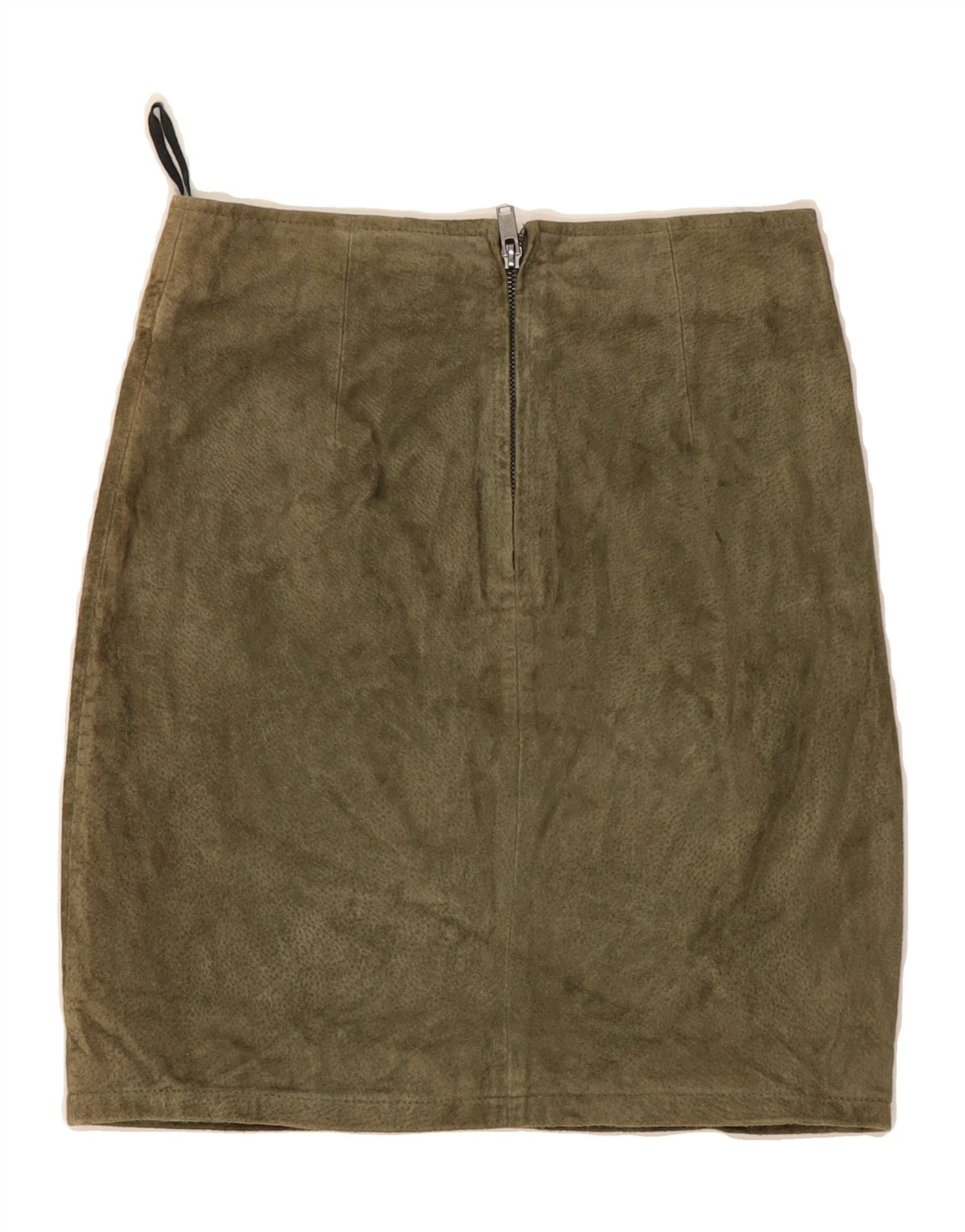 - AI Description: Elevate your wardrobe with this stylish Vila mini skirt. Crafted from supple green suede, this modern skirt features a classic regular fit and a practical zip closure. Perfect for adding a touch of contemporary flair to any outfit. In excellent pre-owned condition. Label size XS (Taille ET: 32). Made in China.