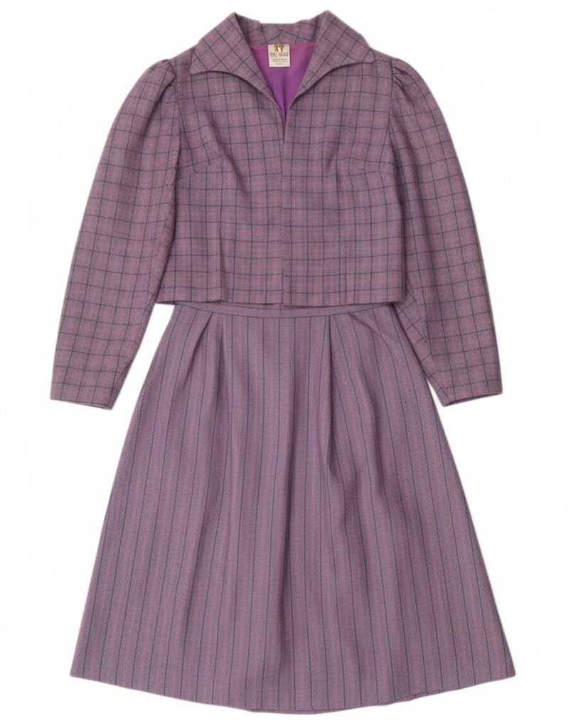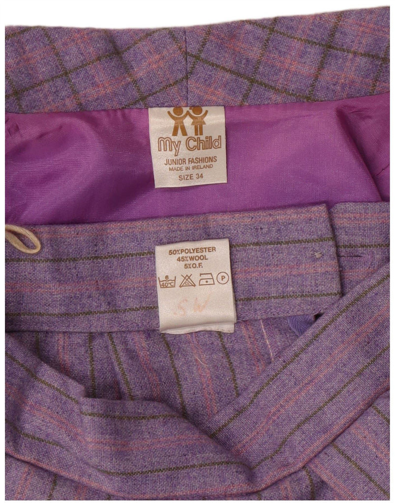 VINTAGE Girls 2 Piece Skirt Set 8-9 Years W24 Purple Check Polyester