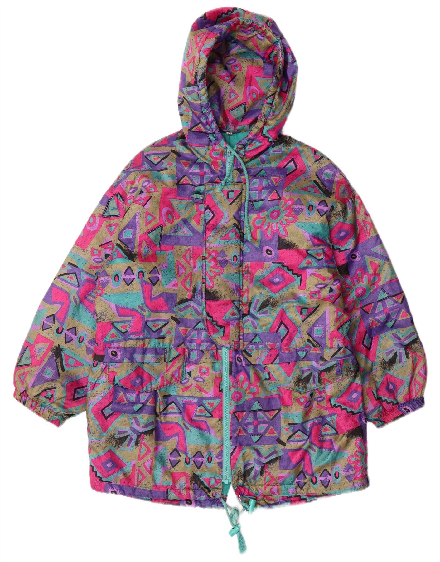 VINTAGE Jachetă de vânt cu glugă pentru fete 15-16 ani, multicoloră, geometrică