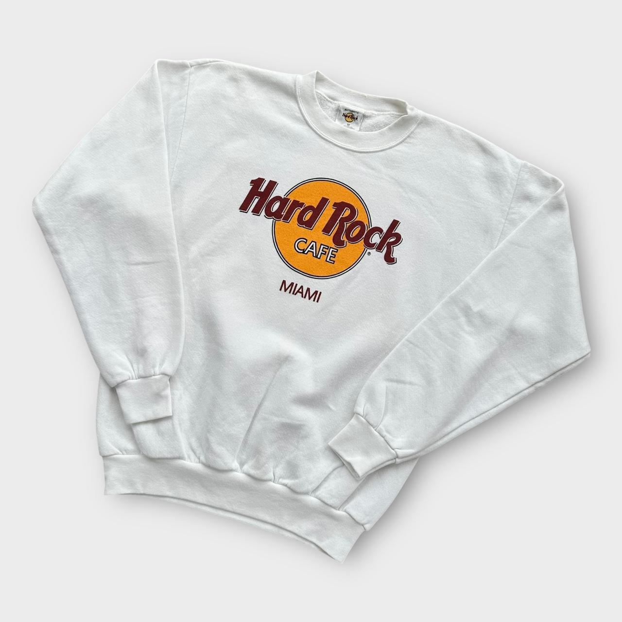 Hanorac cu imprimeu grafic Hard Rock Cage Miami, vintage anilor 90, fabricat în SUA, în alb