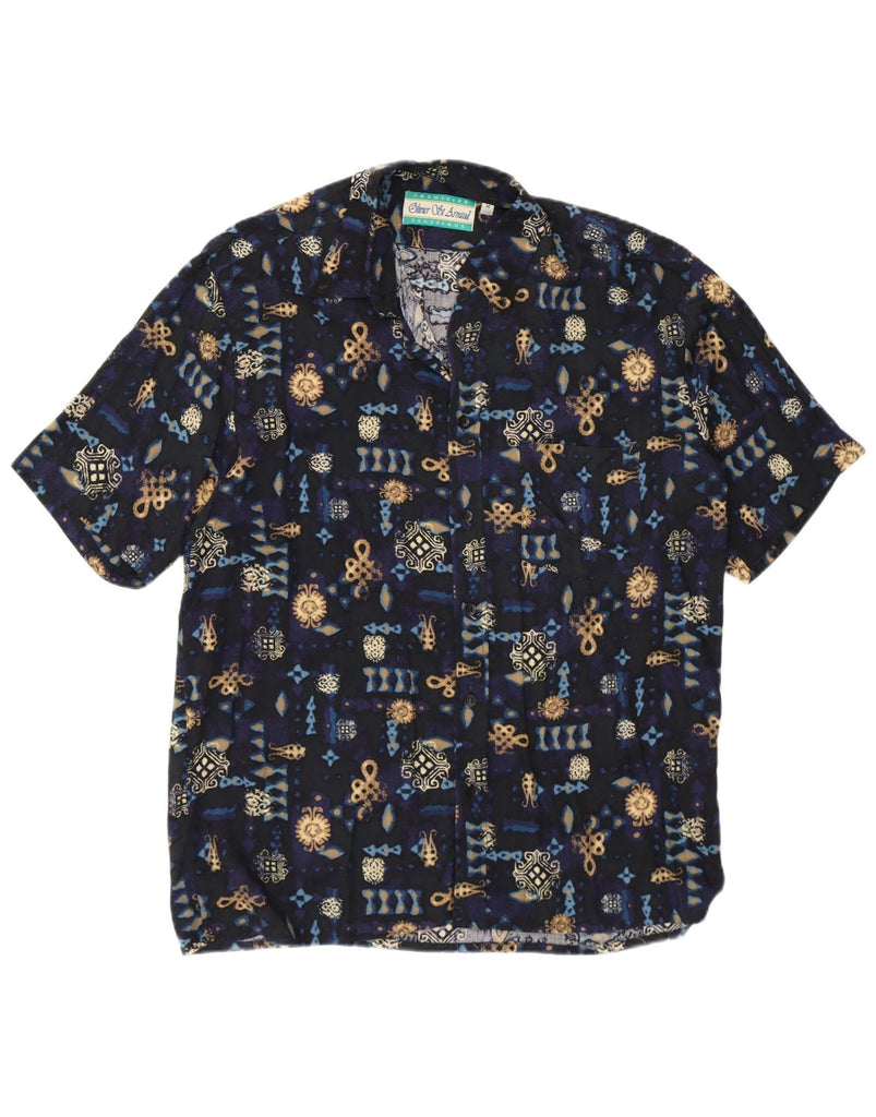 Cămașă pentru bărbați VINTAGE cu model abstract Mărimea 39/40 Albastru bleumarin mediu