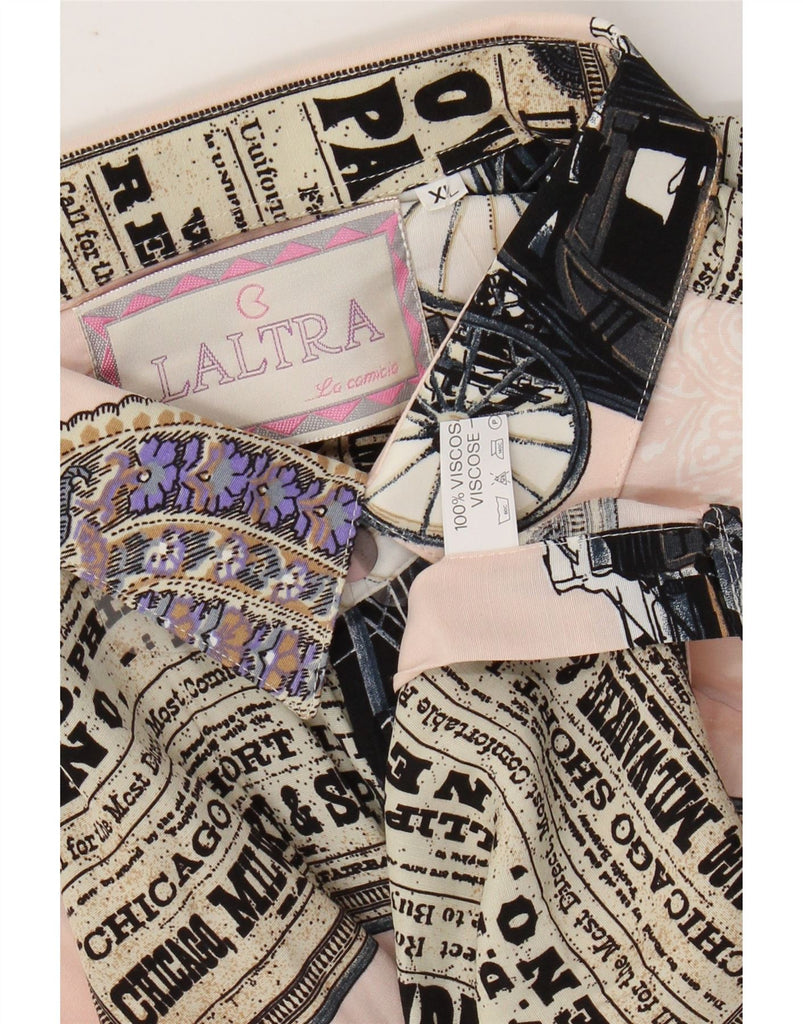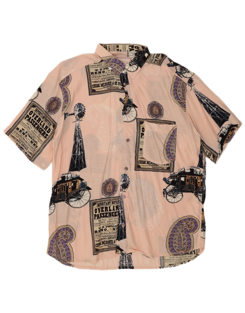 VINTAGE Cămașă cu mânecă scurtă pentru bărbați cu model abstract, XL, roz, viscoză