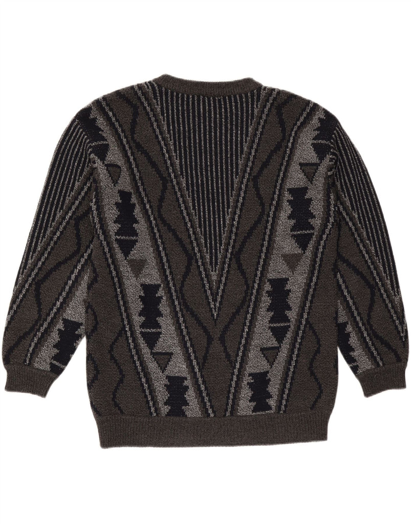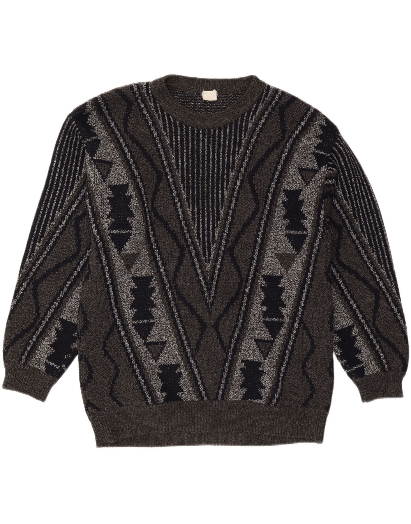 VINTAGE Pulover pentru bărbați cu gât de barcă mare, gri geometric