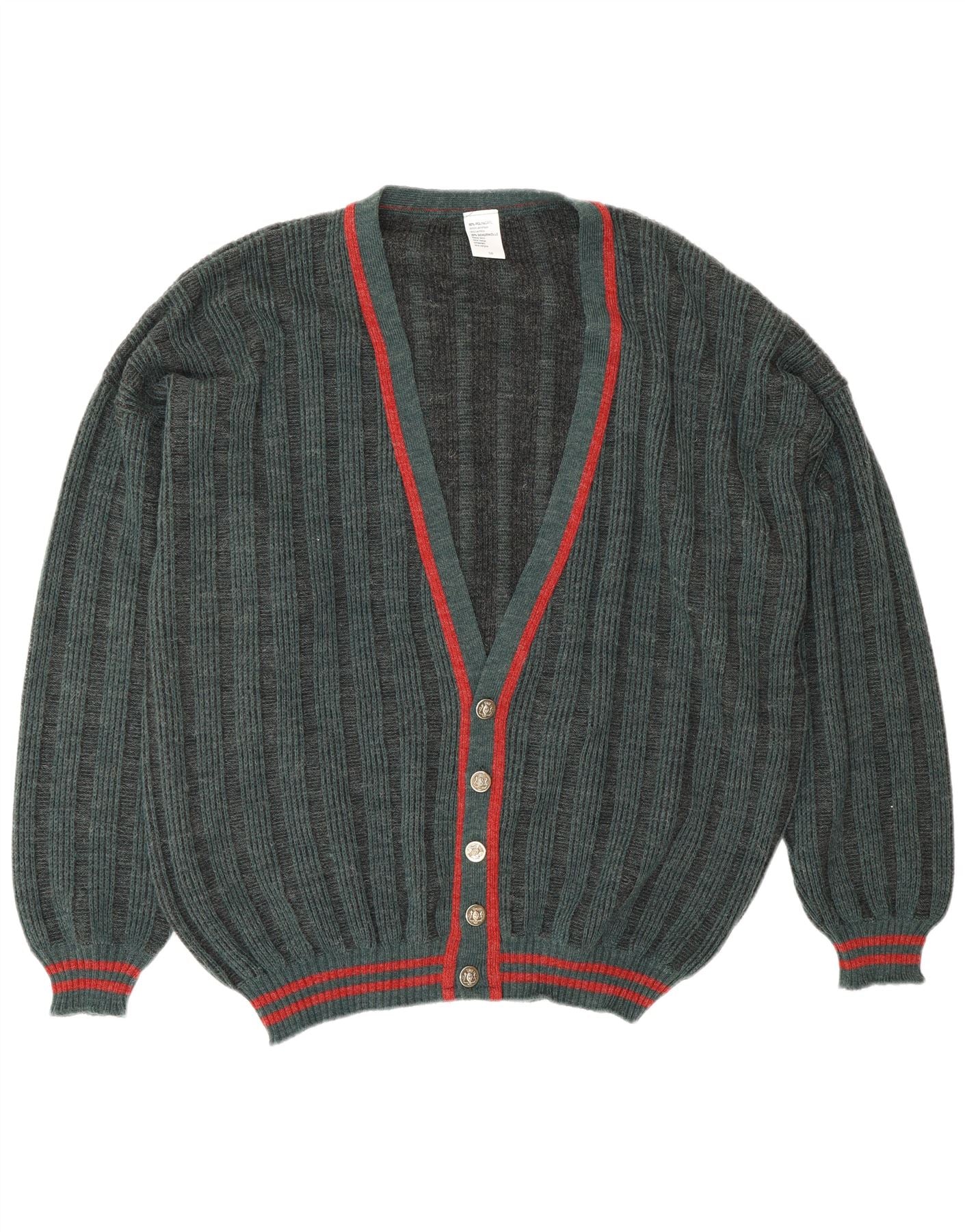 Pulover cardigan pentru bărbați VINTAGE IT 58 3XL Poliacrilic cu dungi verzi