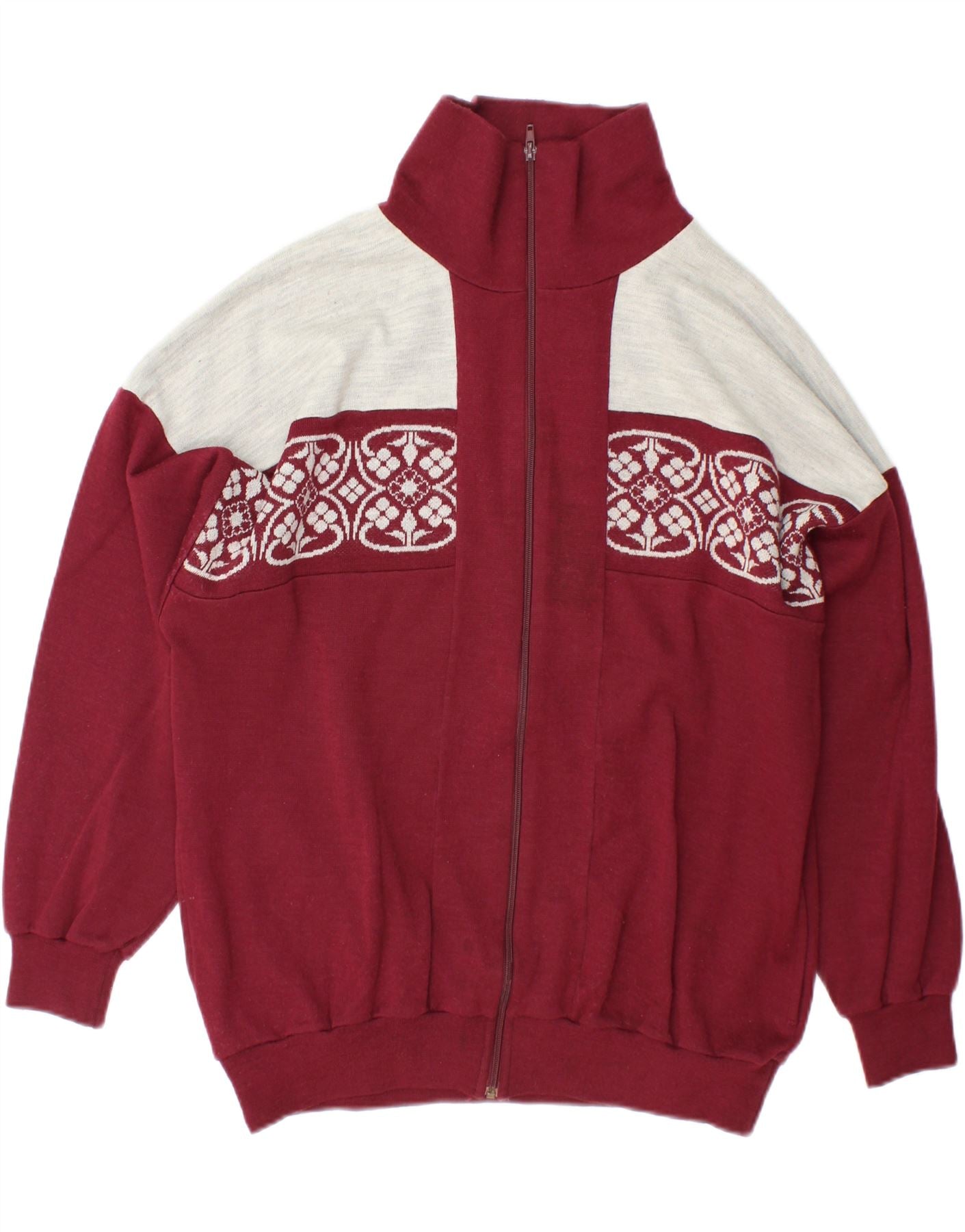 Pulover Cardigan Bărbați VINTAGE Mare Bordeaux Geometric Acrilic