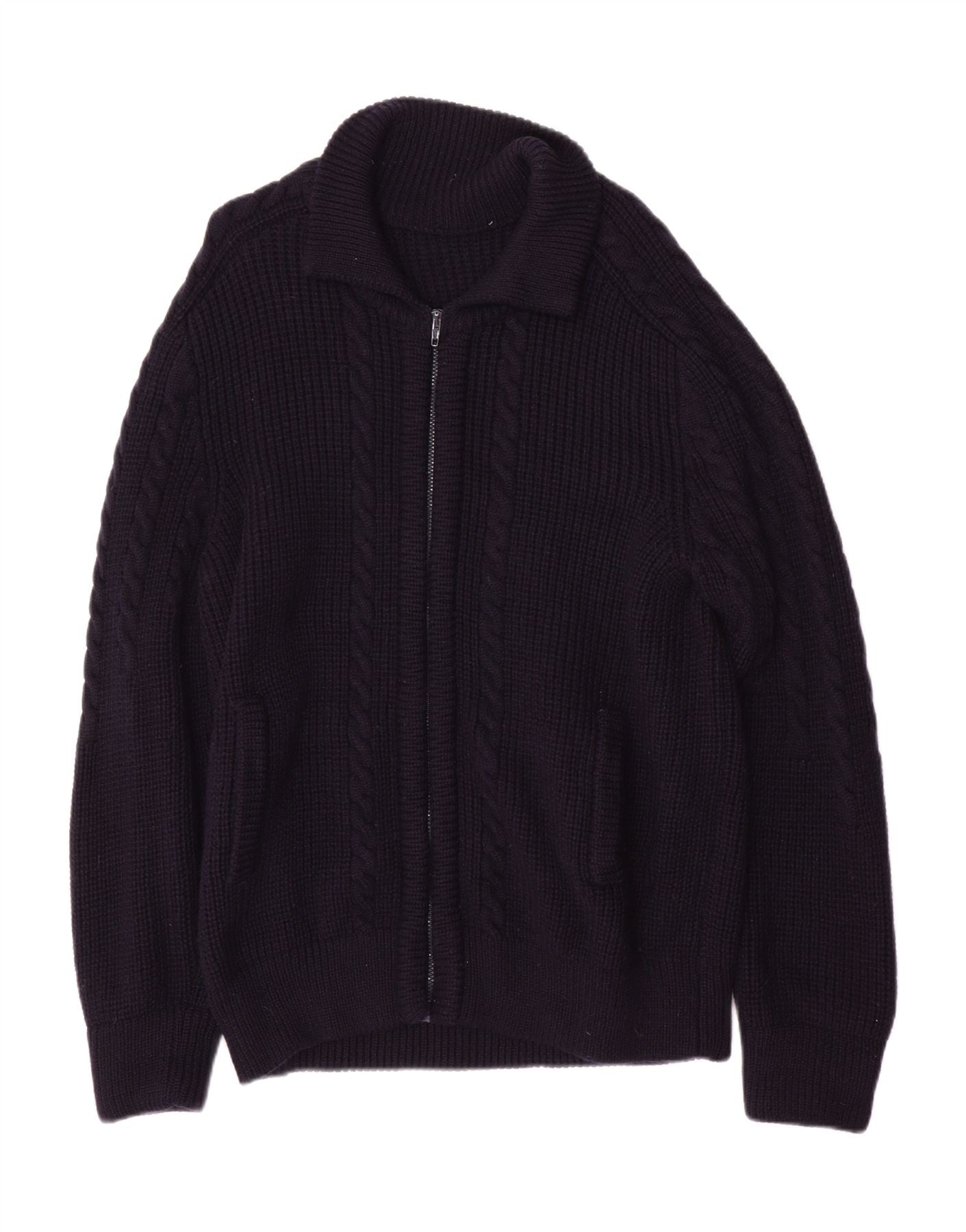 Pulover cardigan pentru bărbați VINTAGE Lână mare albastru bleumarin