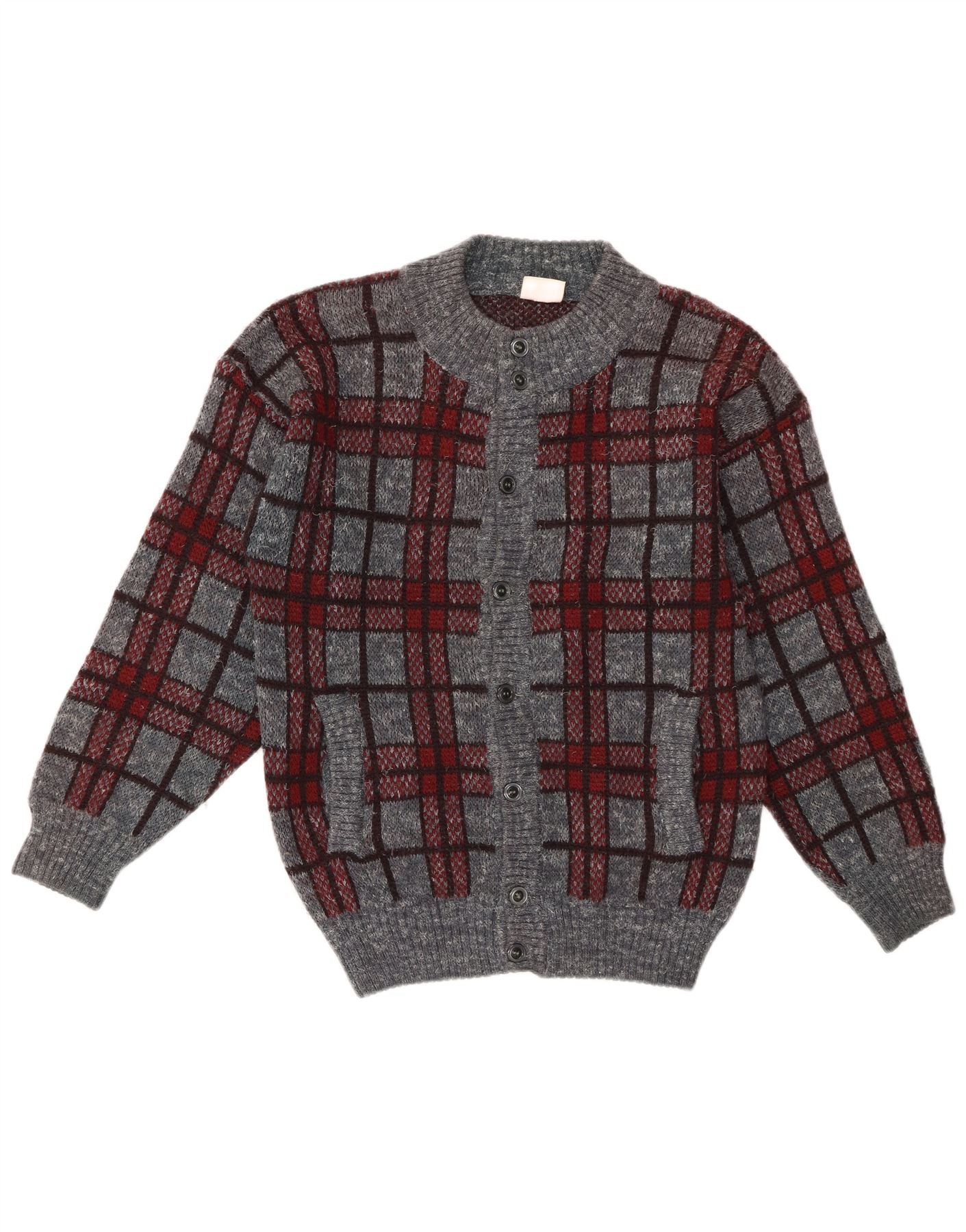 Pulover Cardigan Vintage pentru bărbați, gri mediu, carouri acrilice