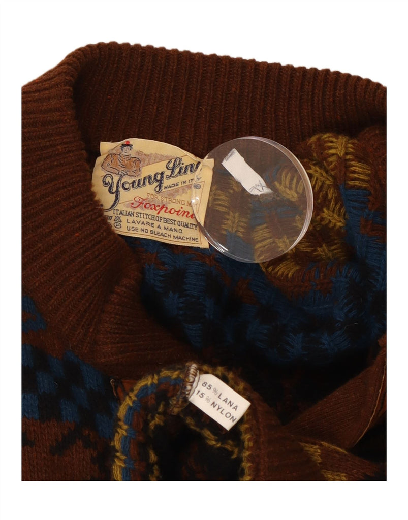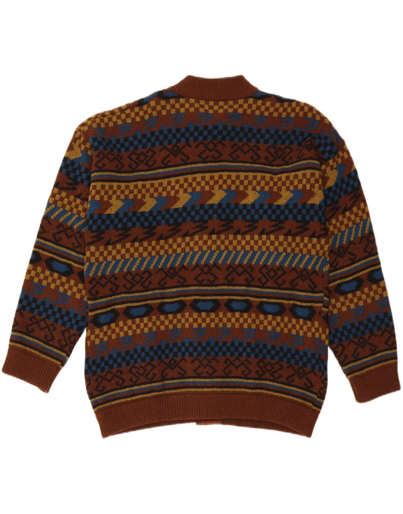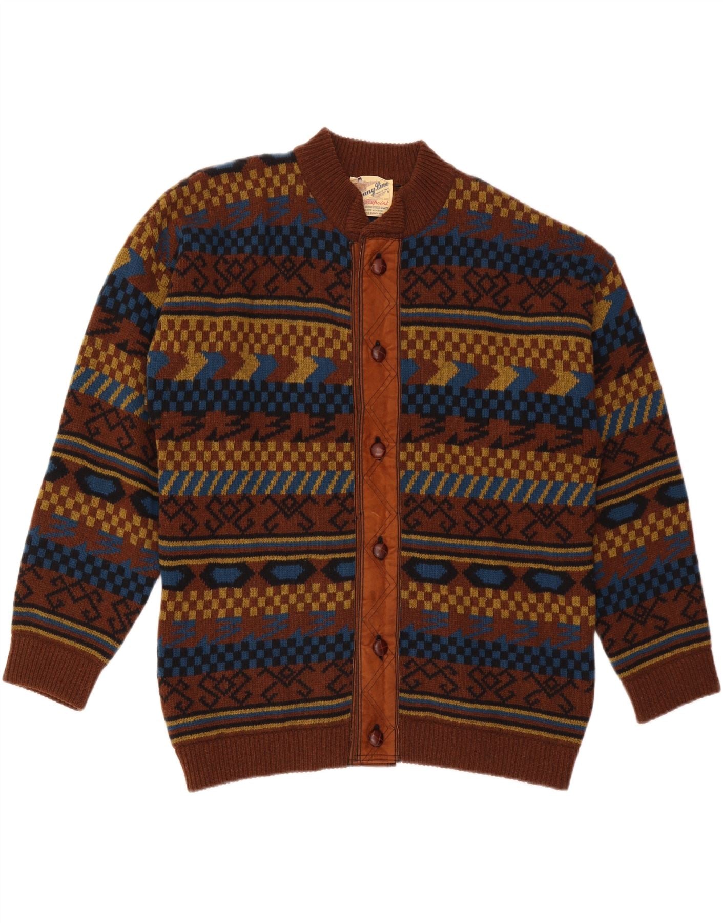 Pulover cardigan pentru bărbați VINTAGE XL maro din lână Fair Isle