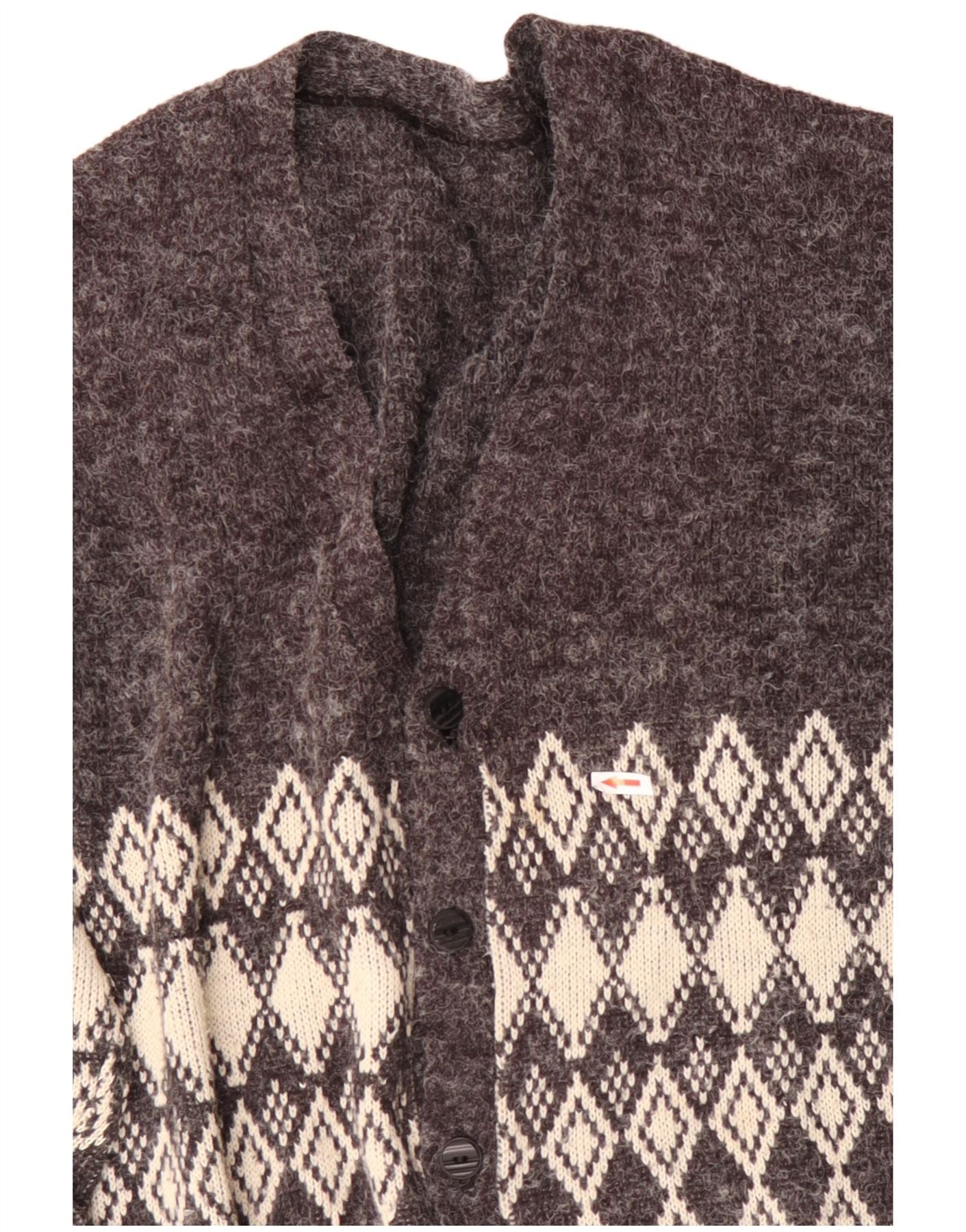 Pulover cardigan pentru bărbați VINTAGE 2XL gri Argyle/Diamond Acrylic