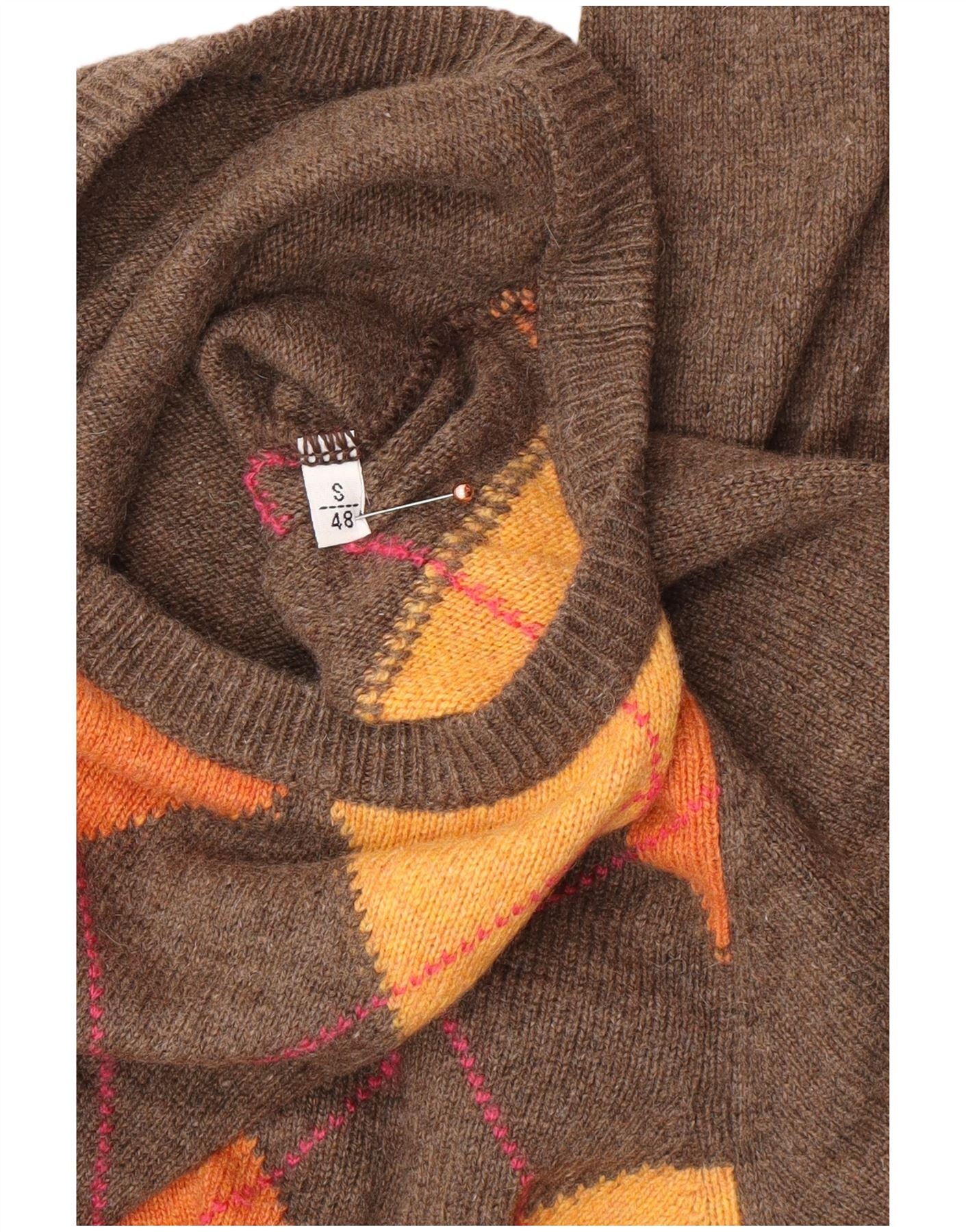 Pulover VINTAGE pentru bărbați cu gât roșu IT 48 Small Brown Argyle/Diamond