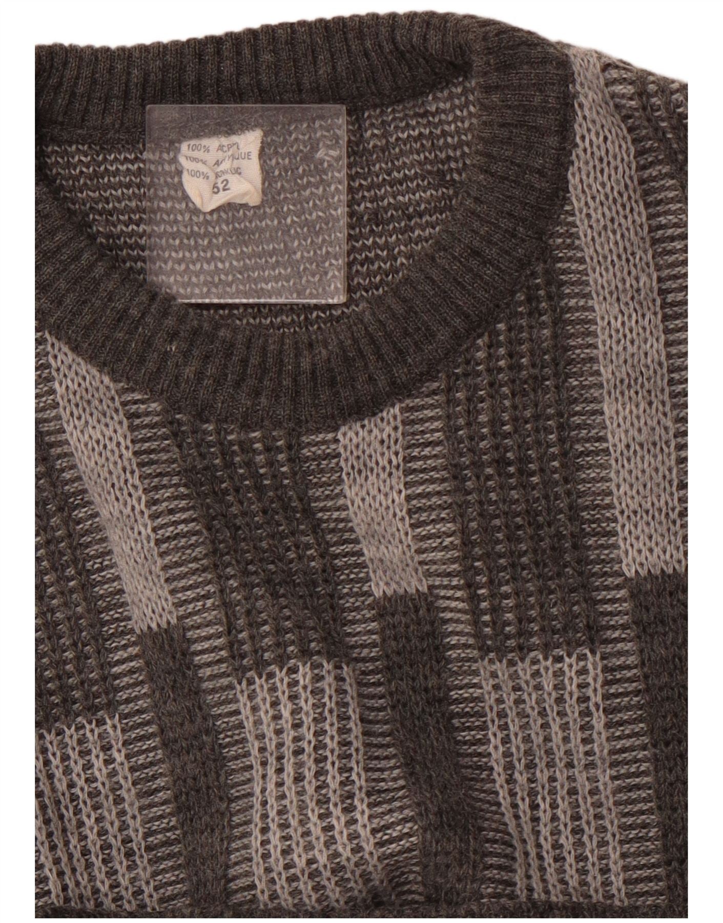 Pulover VINTAGE pentru bărbați cu gât roșu IT 52 mare, gri geometric, acrilic