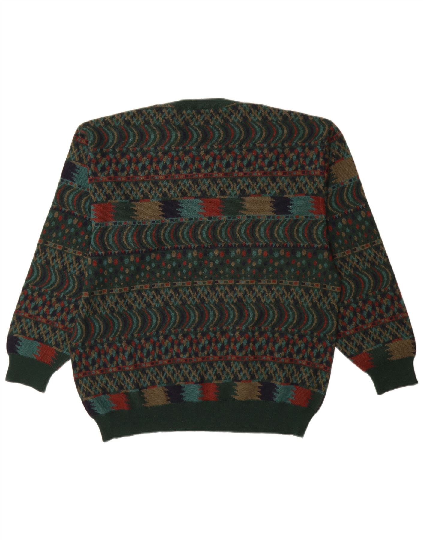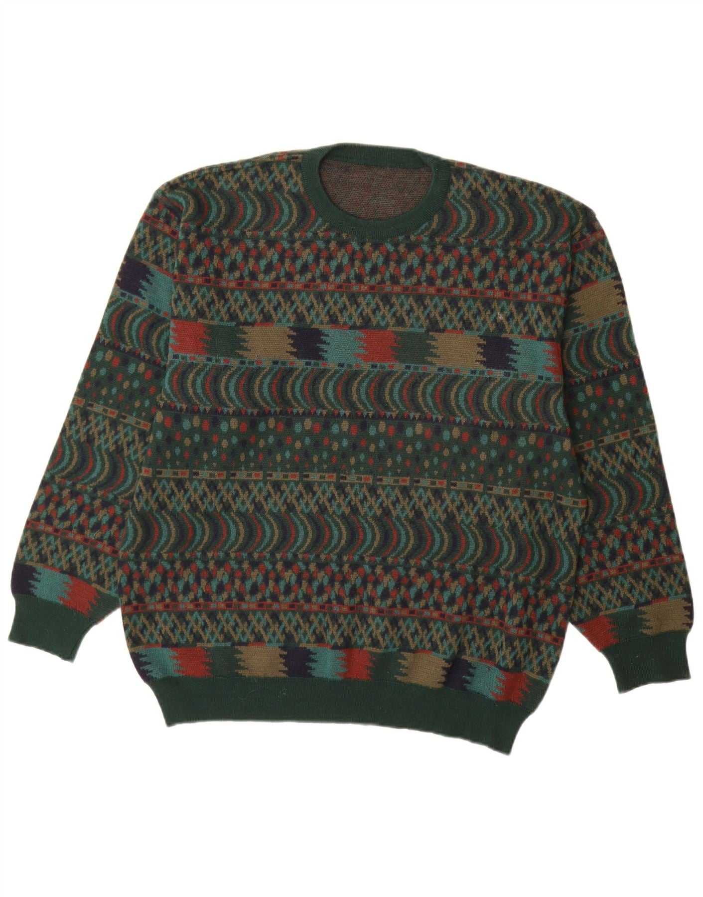 Pulover VINTAGE pentru bărbați cu gât roșu IT 54 XL Lână verde Fair Isle